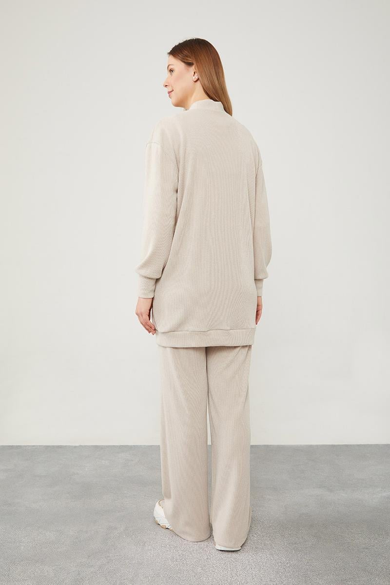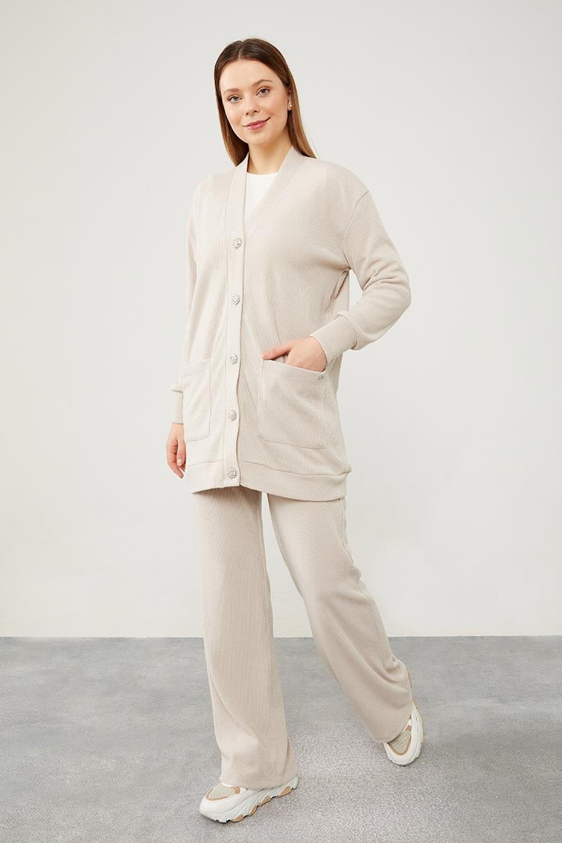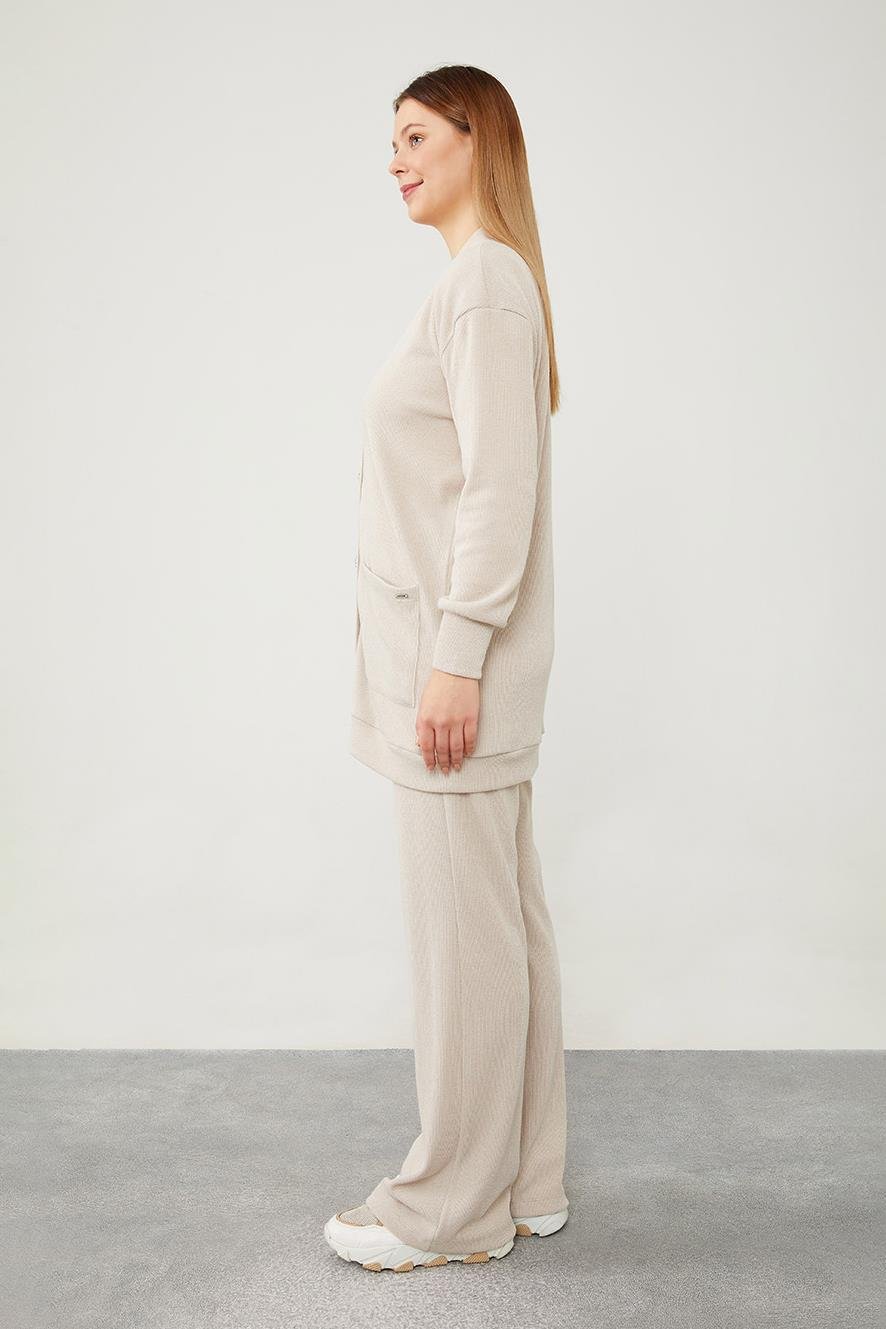 طقم السترة المزدوج هذا بتفاصيله الأنيقة هو خيار متعدد الاستخدامات يمكن استخدامه في العديد من المناسبات، من الدعوات الخاصة إلى الأناقة اليومية. إنه الخيار المثالي للسيدات اللواتي يرغبن في الظهور بأناقة مع الشعور بالراحة. باهتمامه الدقيق بالتفاصيل ووقفته الراقية، يصبح الخيار الأمثل لمن يرغبن في الظهور بأناقة في كل مكان. هذا الطقم مع السترة، الذي يمكن الانتقال به بسهولة من النهار إلى الليل، يصبح قطعة المنقذ في خزانة ملابسك.
