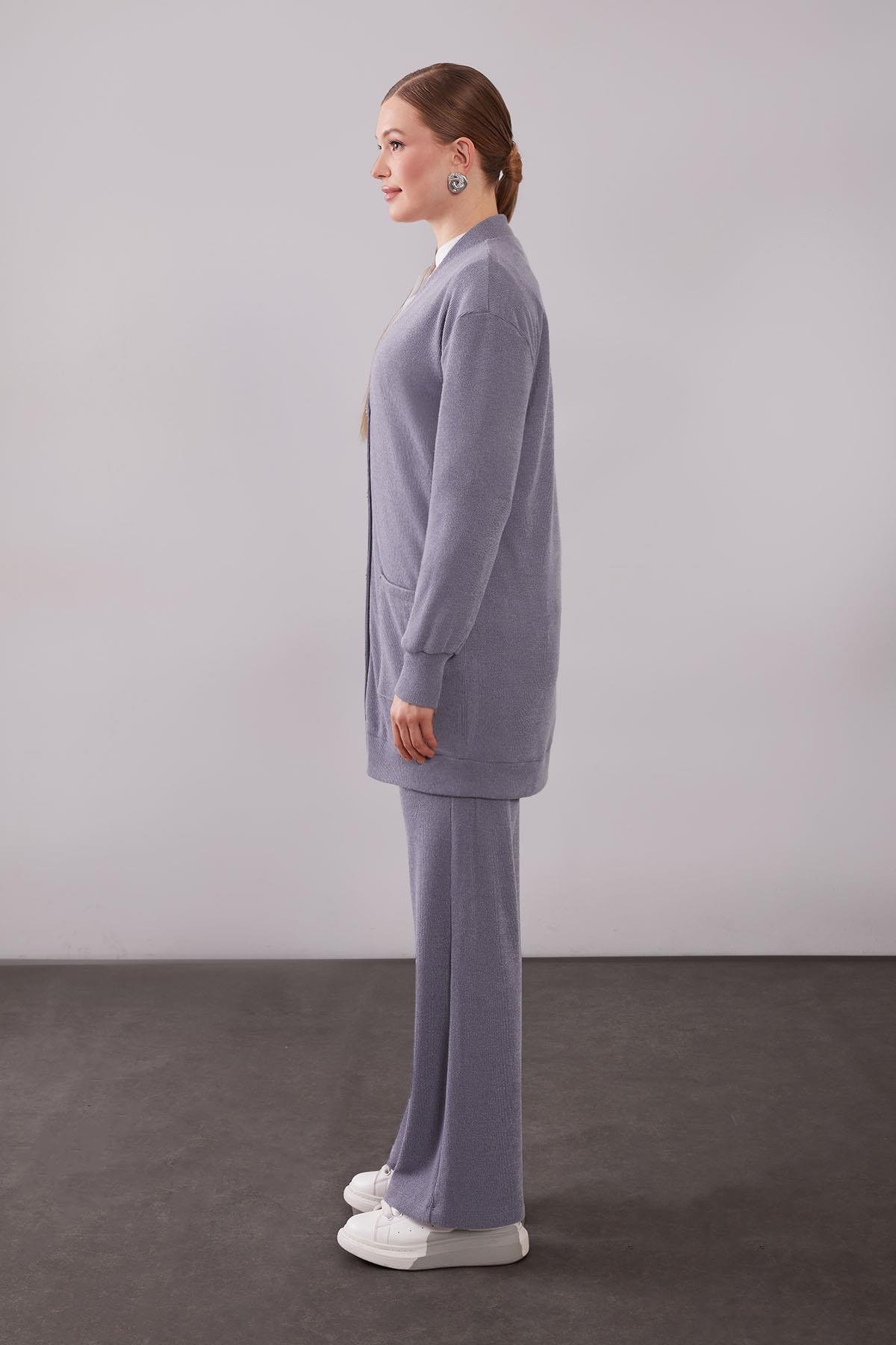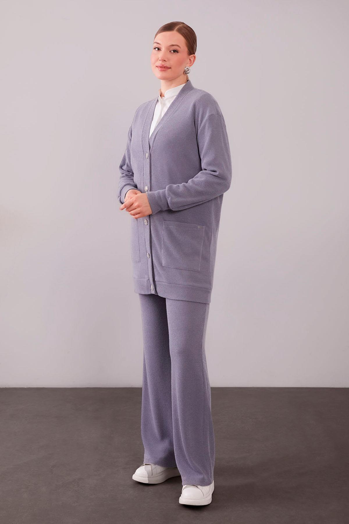 طقم تريكو مع كنزة منقوشة باللون الرمادي