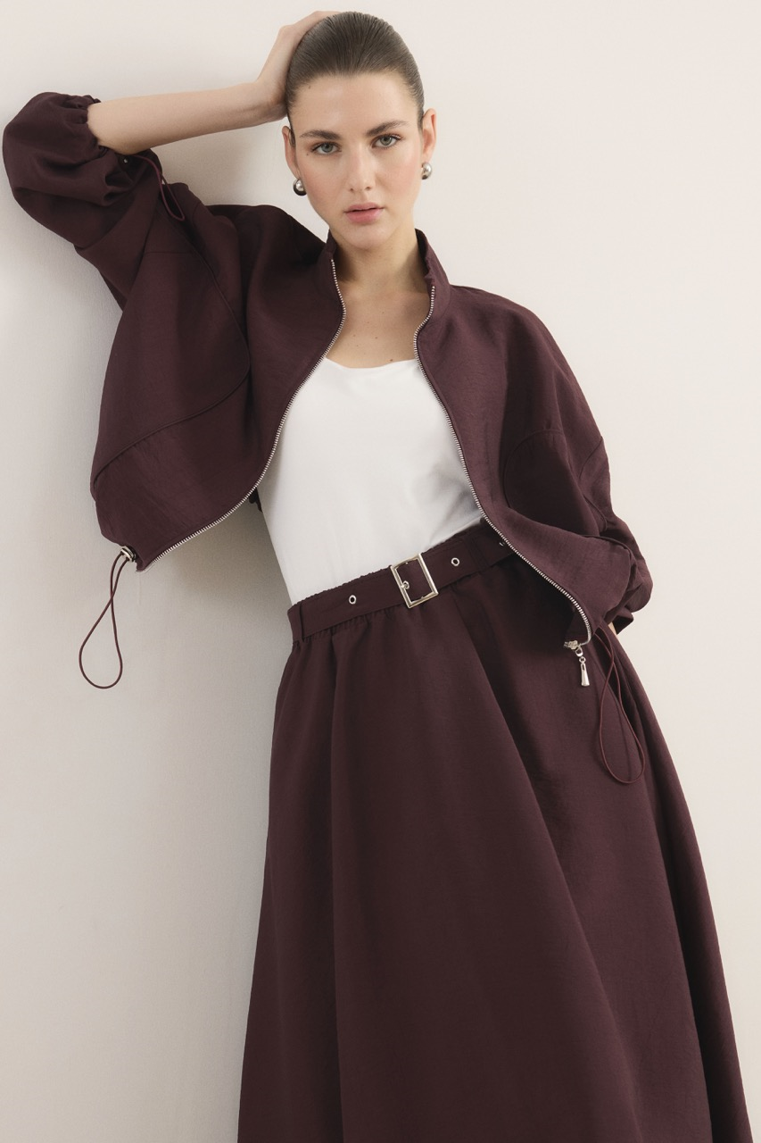 طقم تنورة كوبرا بتصميم هدب متوسط – لون بورجوندي