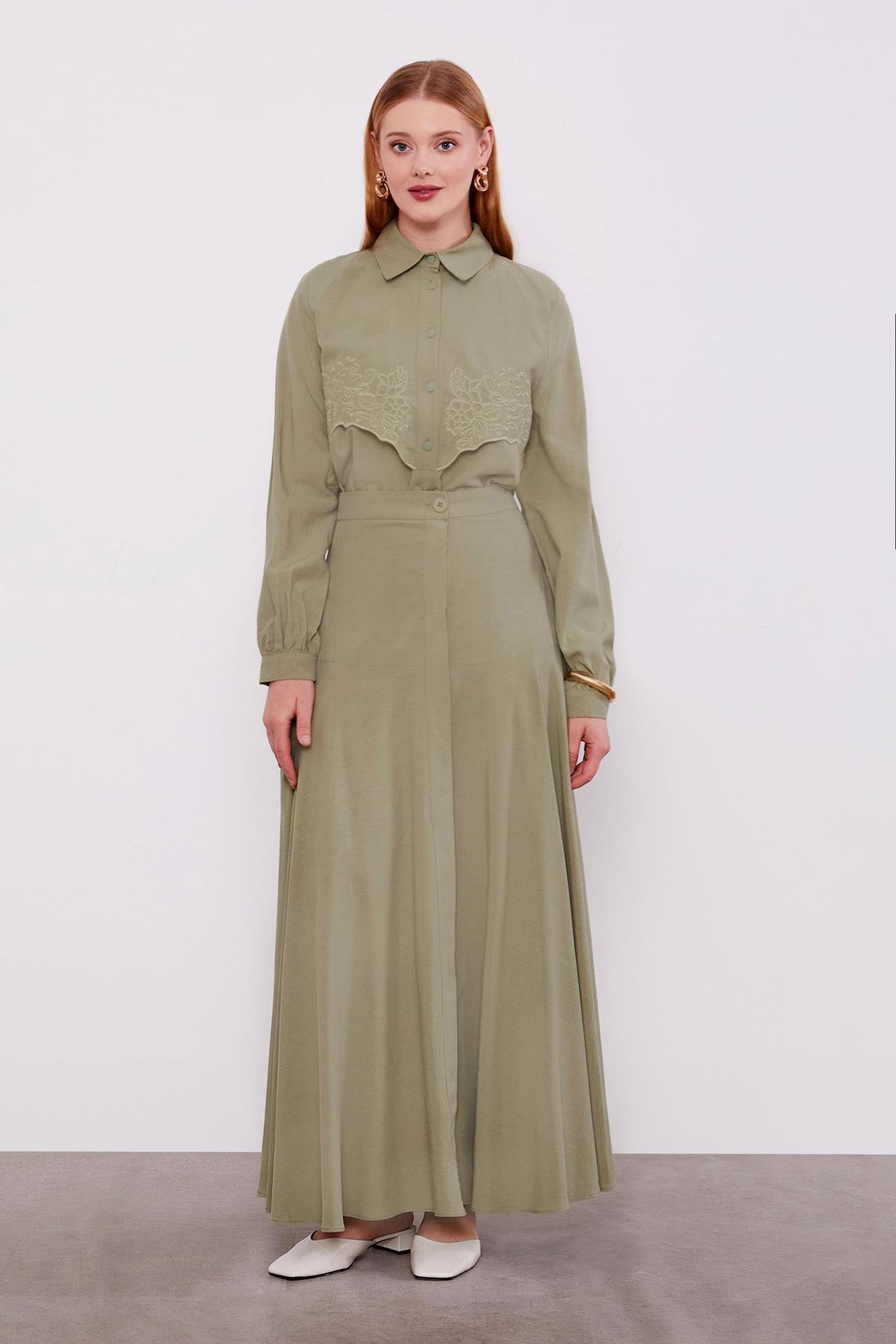 طقم تنورة كوبرا بتفاصيل التطريز الأخضر
