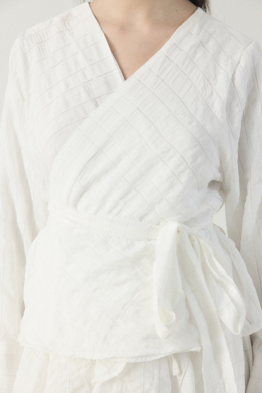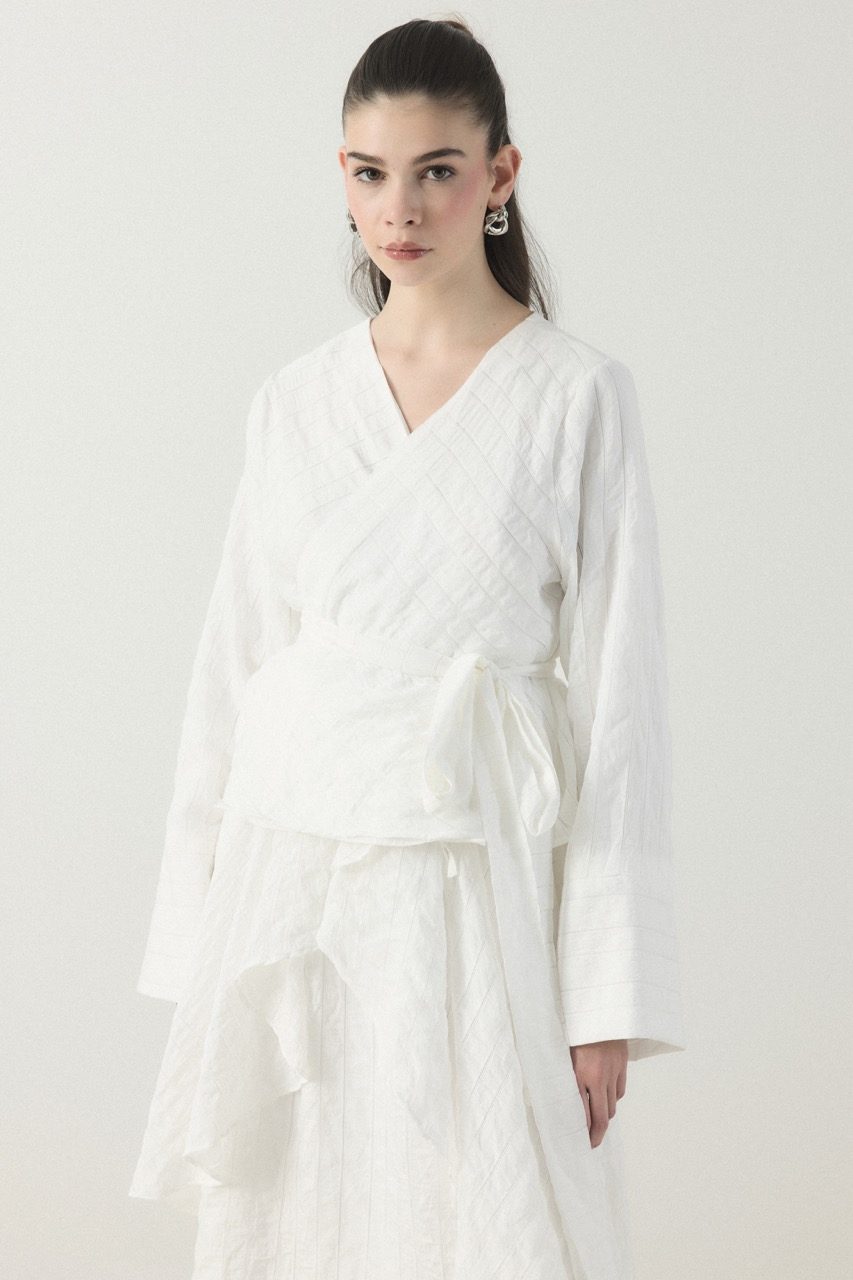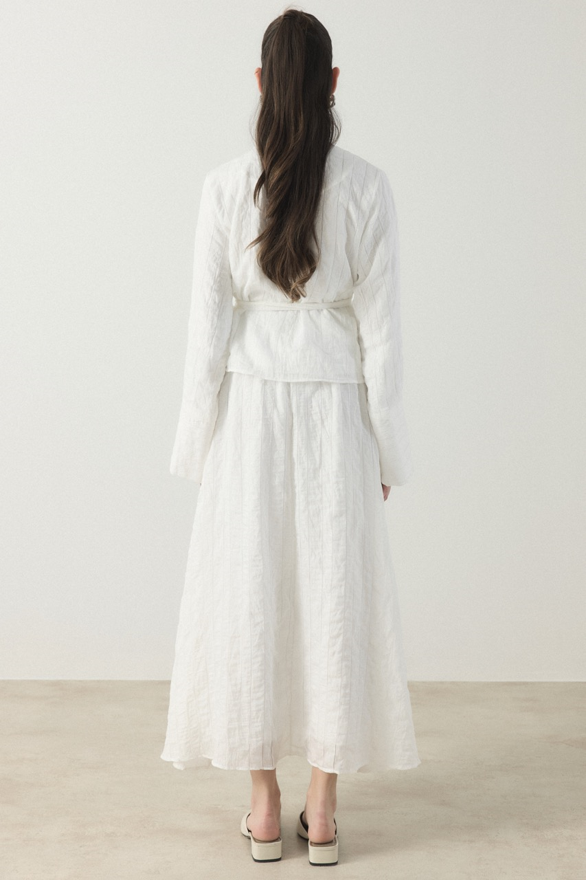 طقم تنورة مخططة مطوية – بلون البيج الفاتح
