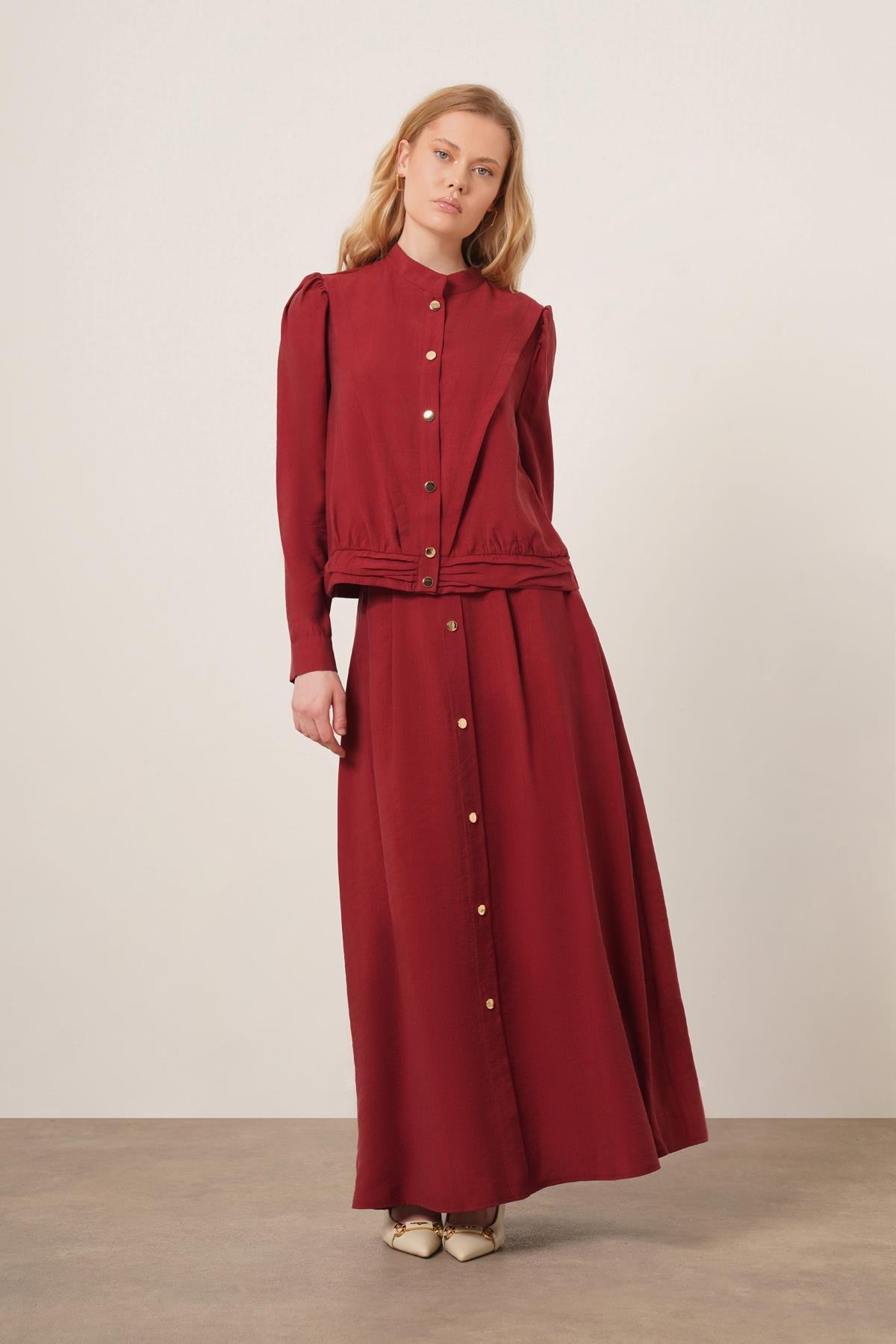 طقم تنورة مودال للنساء من FTZ بلون بورجوندي 31174