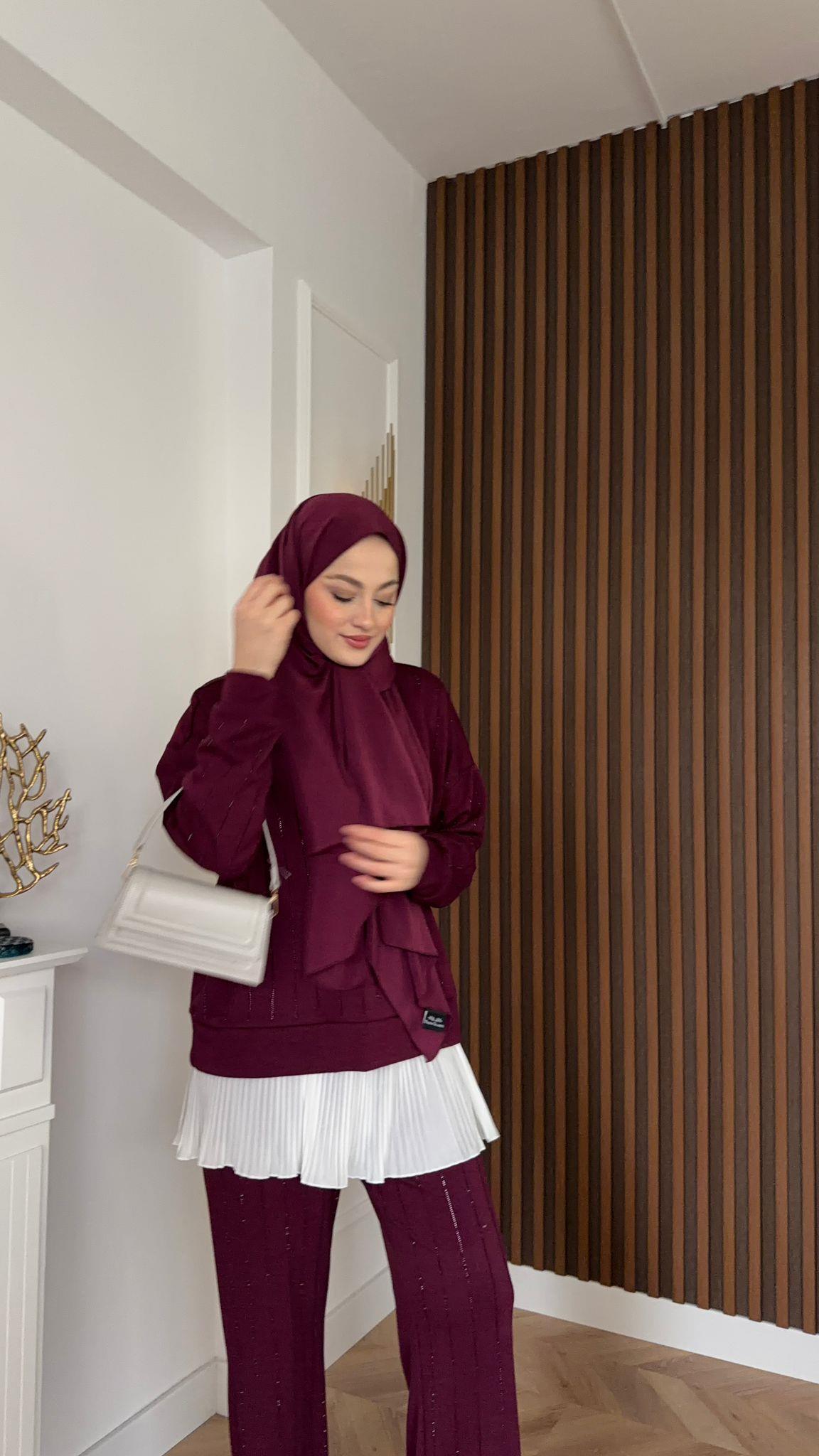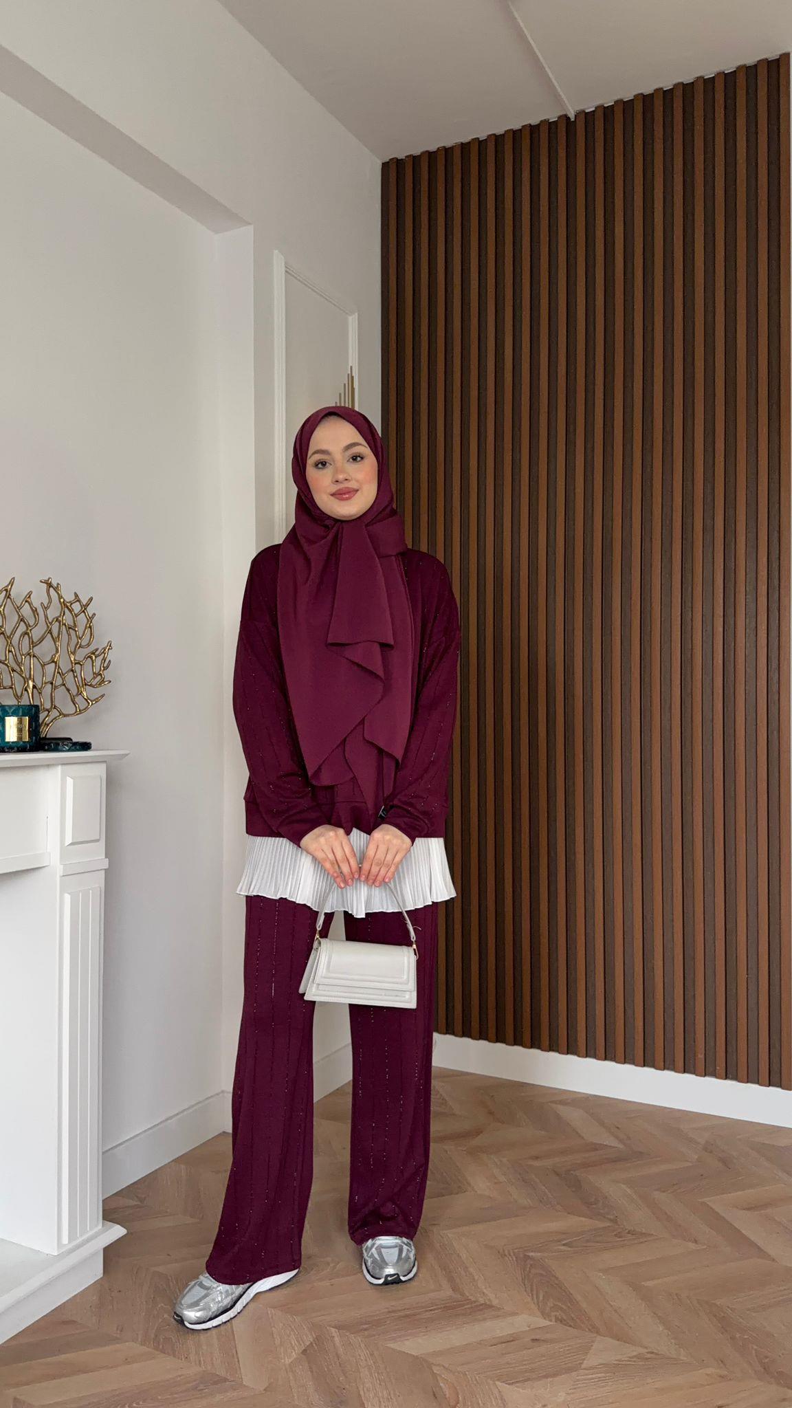 طقم ثنائي أوبش باللون العنابي مزين بالحجارة الرياضية