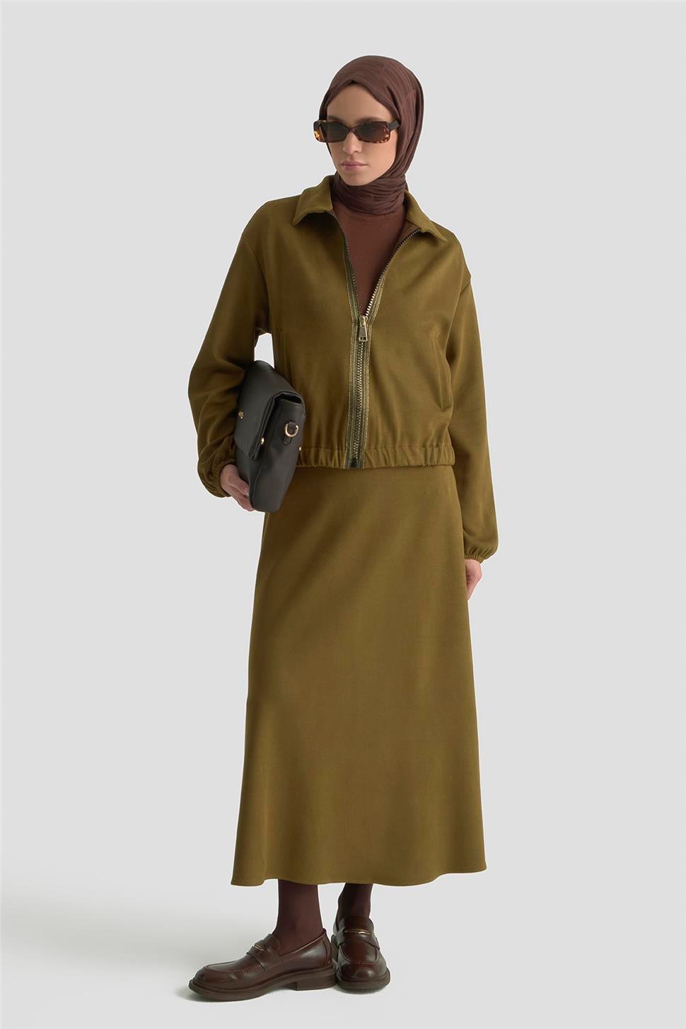 طقم جاكيت بومبر منسوج أرمين 25KT1619 باللون الأخضر الزيتوني