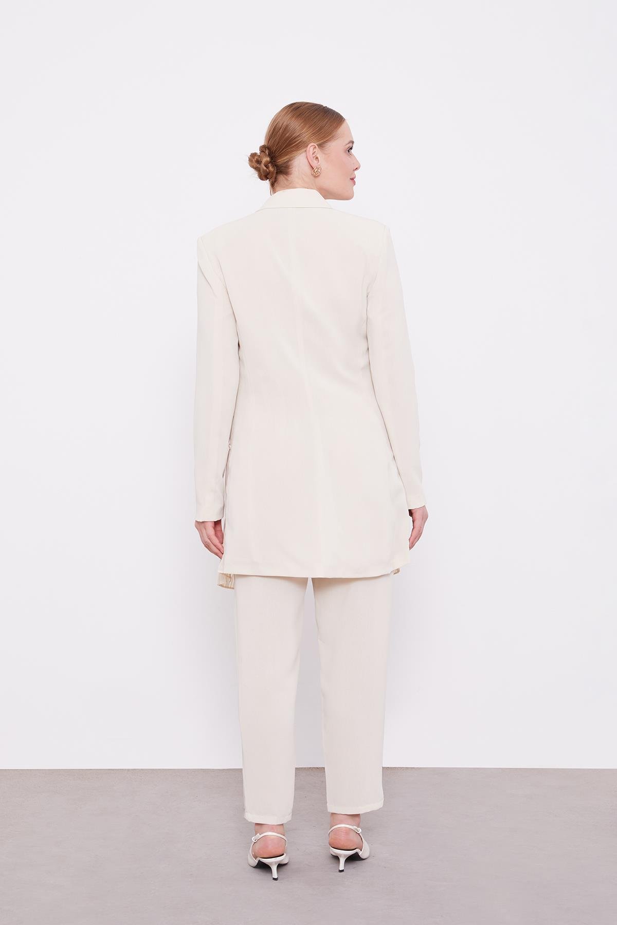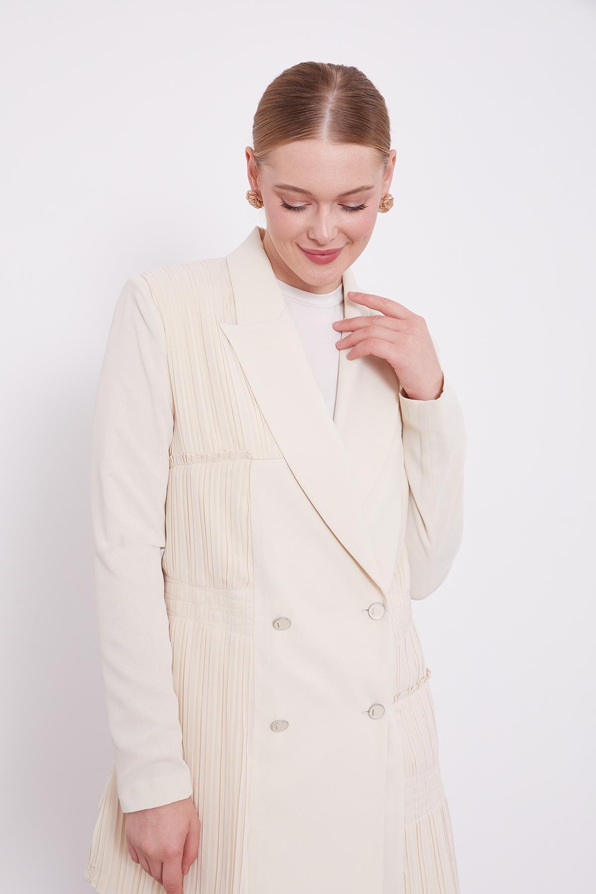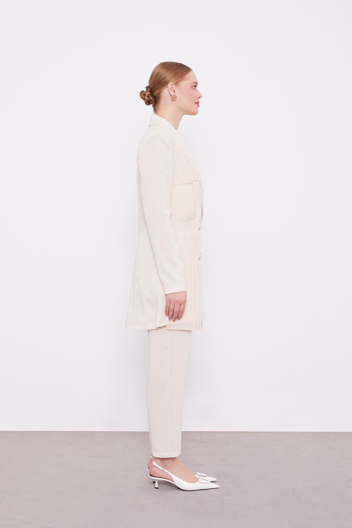 طقم جاكيت من الشيفون المطوي باللون الحجري
