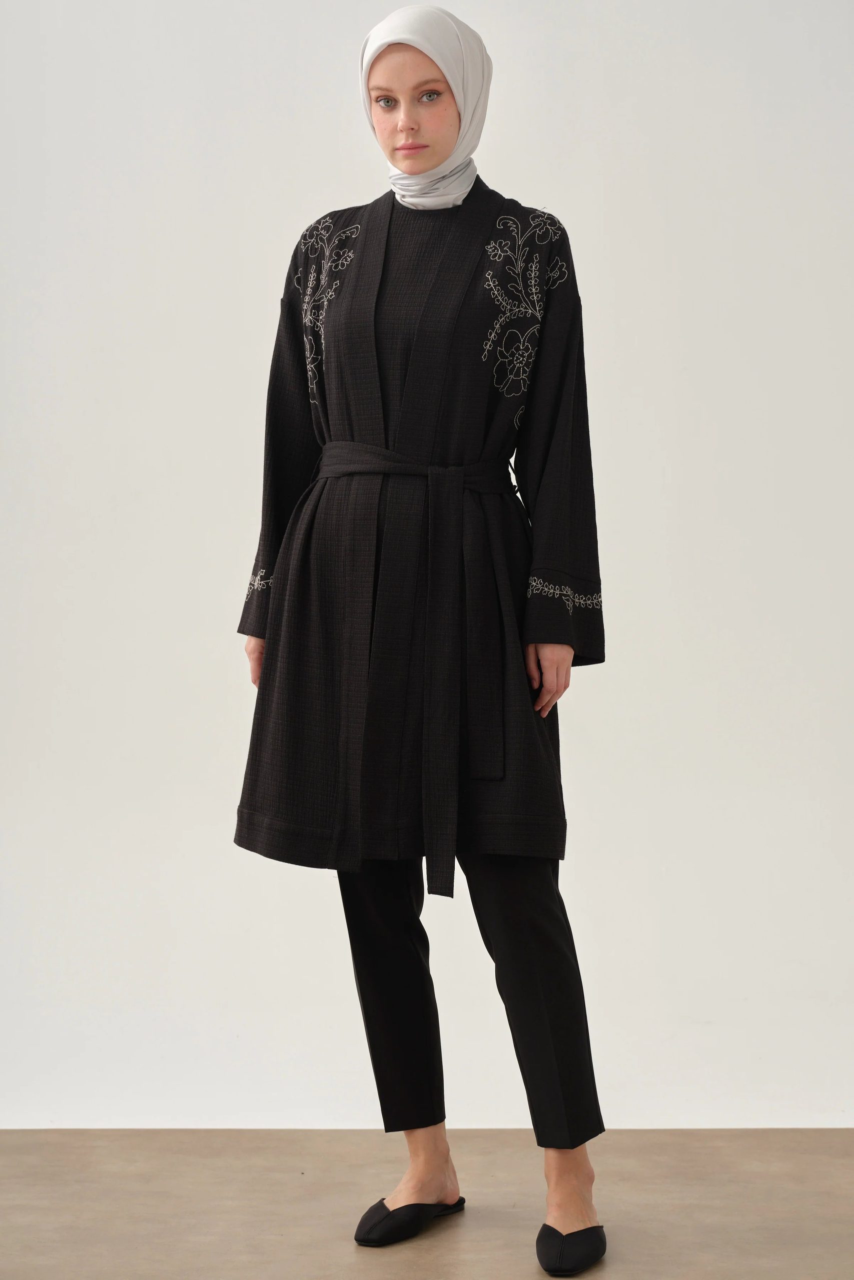 يقدم هذا الطقم من الجاكيت والبلوزة، المزين بتفاصيل تطريز أنيقة، مظهرًا كاملًا ومثيرًا للإعجاب. توفر القطع المتطابقة مظهرًا سهلًا ودقيقًا. إنه الاختيار المثالي للمناسبات الخاصة والأناقة اليومية.