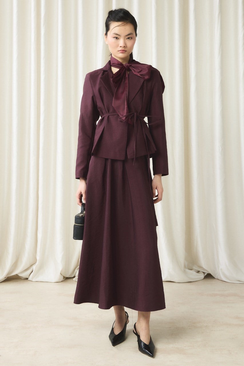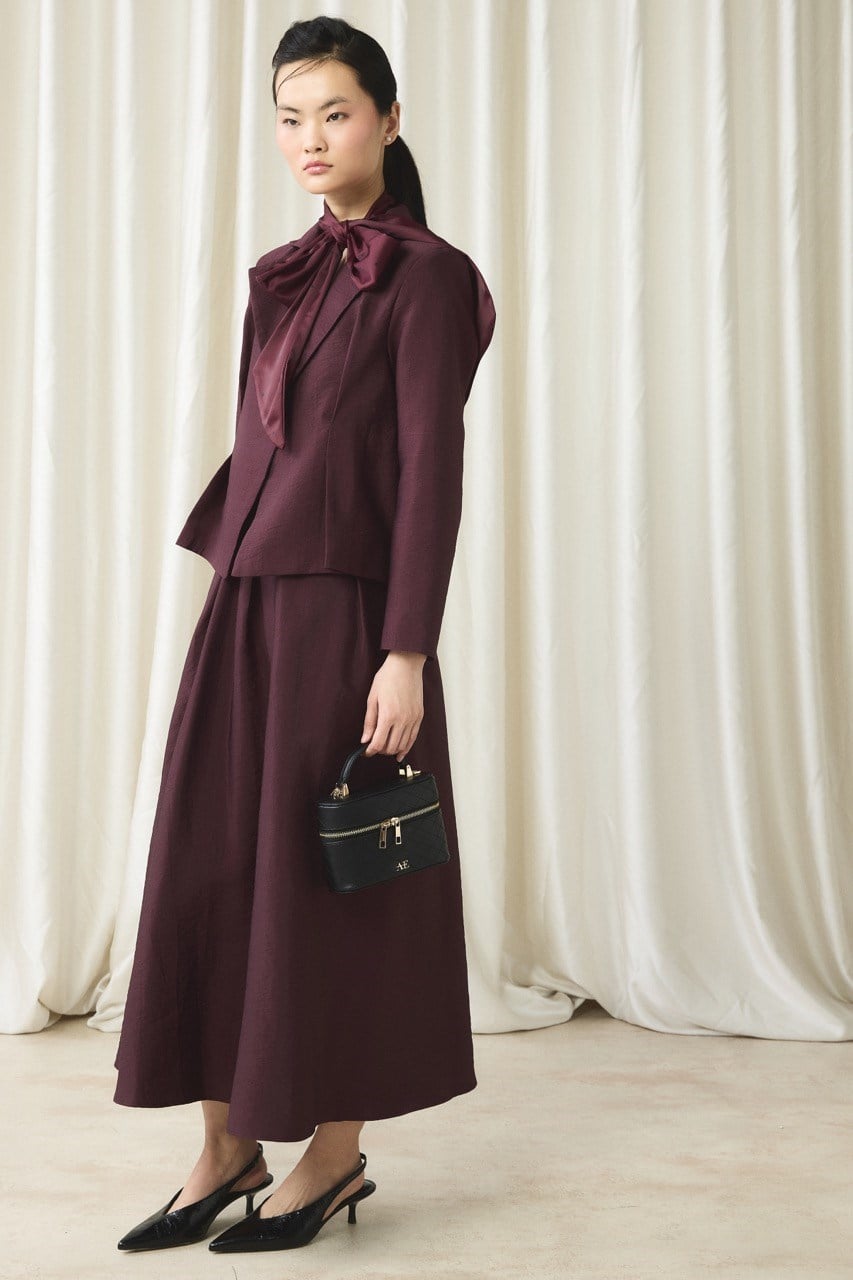 طقم جاكيت وتنورة مخصّص من الخصر – لون الكرزي الداكن