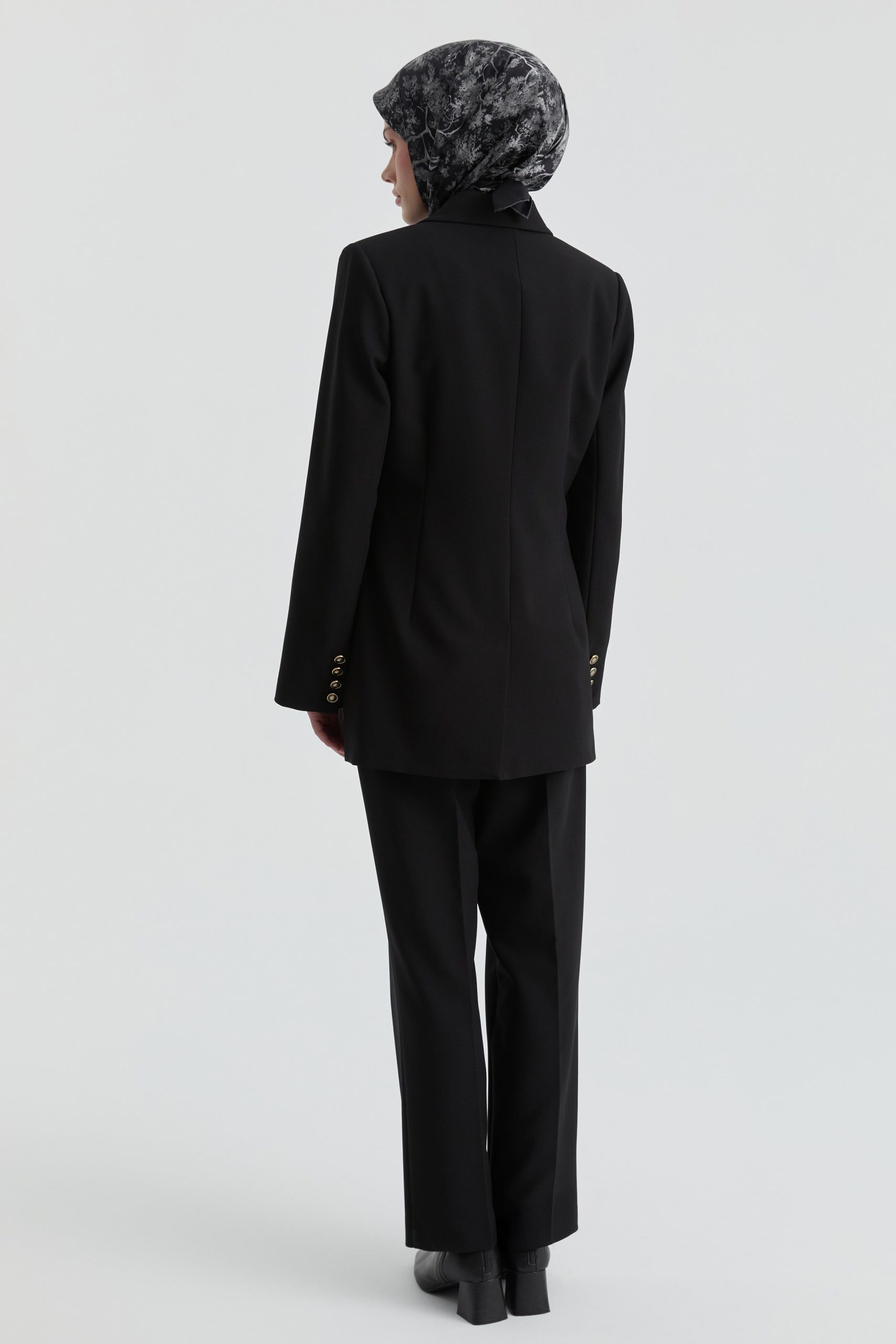 طقم جاكيت وسراويل بتفاصيل أزرار ذهبية – أسود