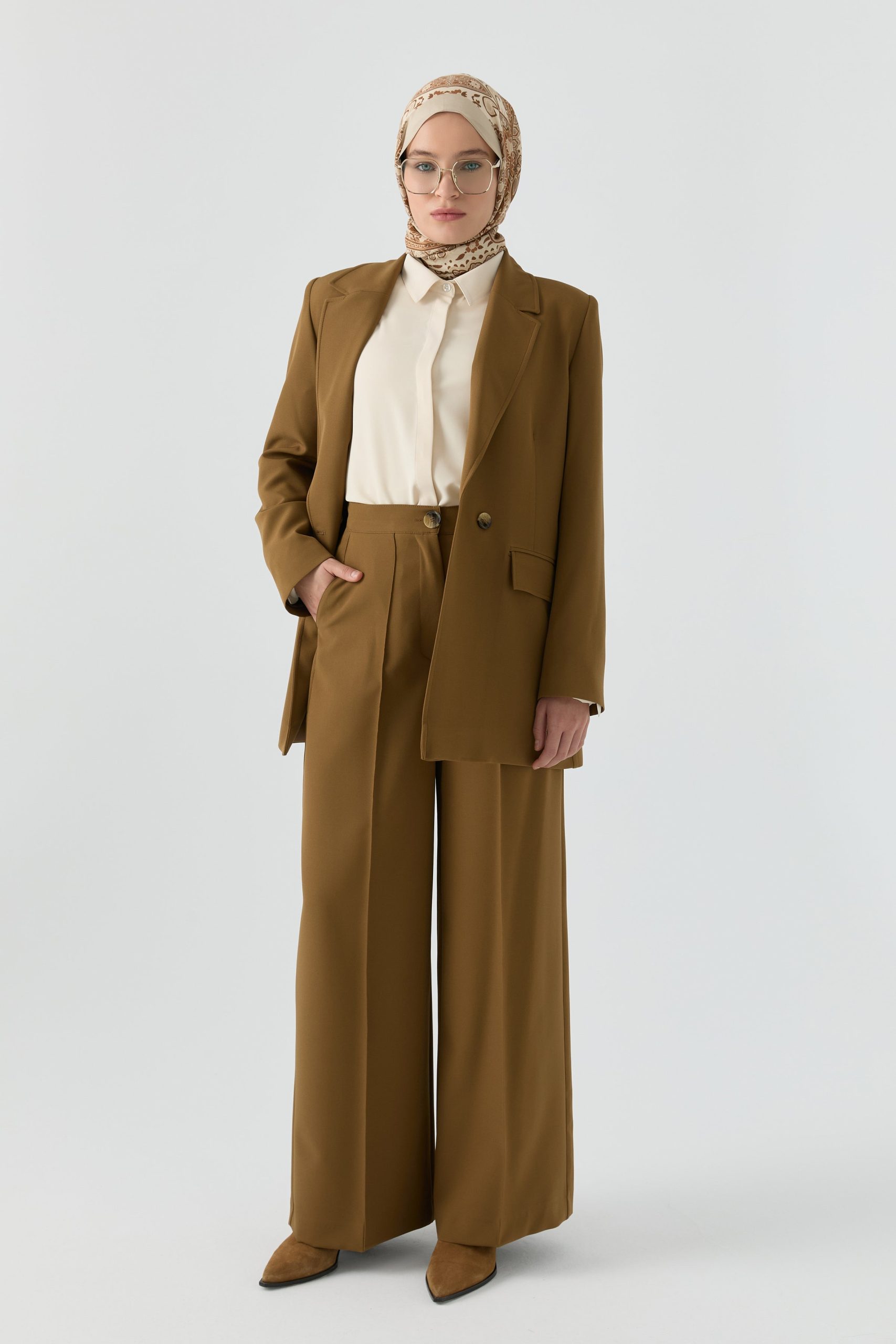 طقم جاكيت وسراويل بتفاصيل جيوب – زيتوني