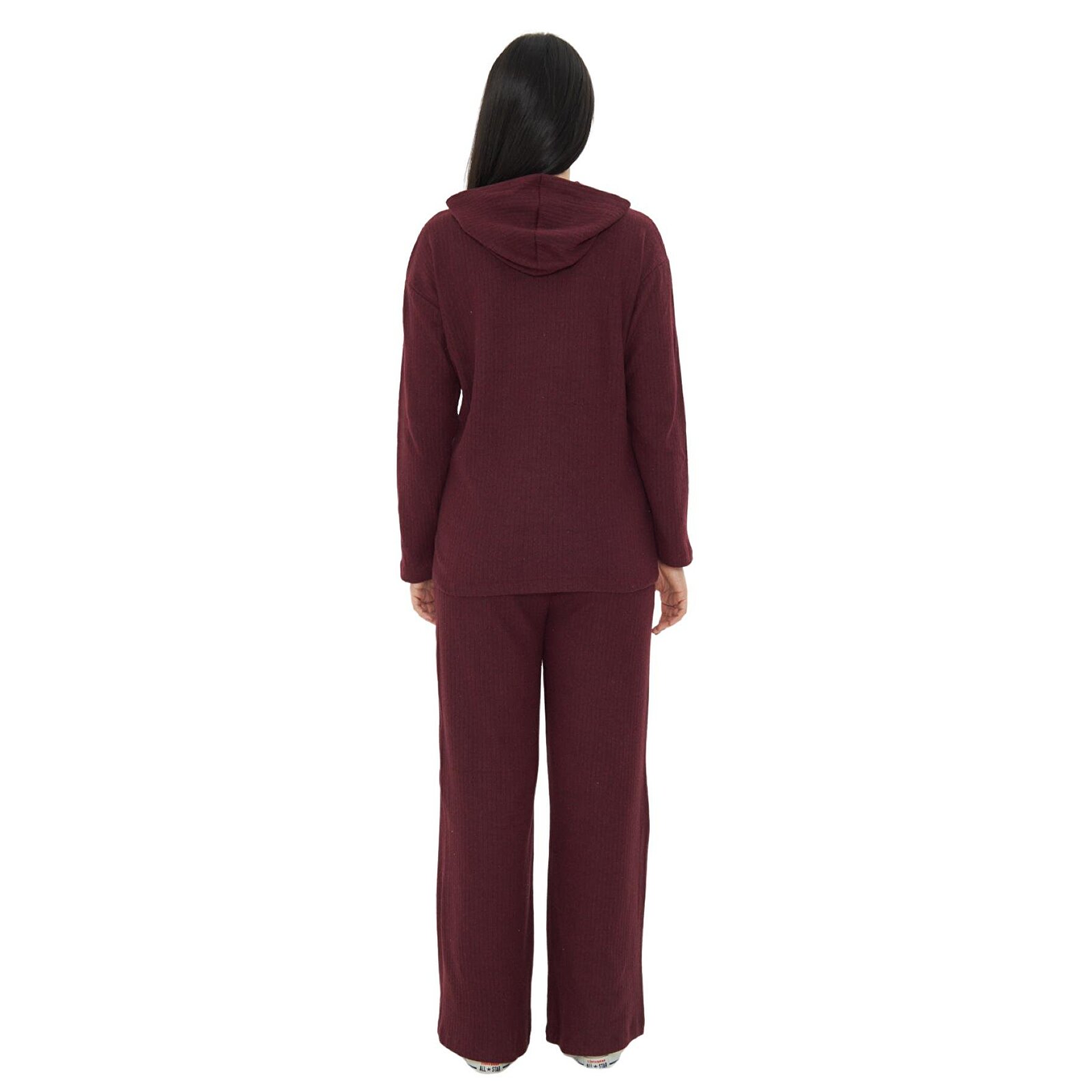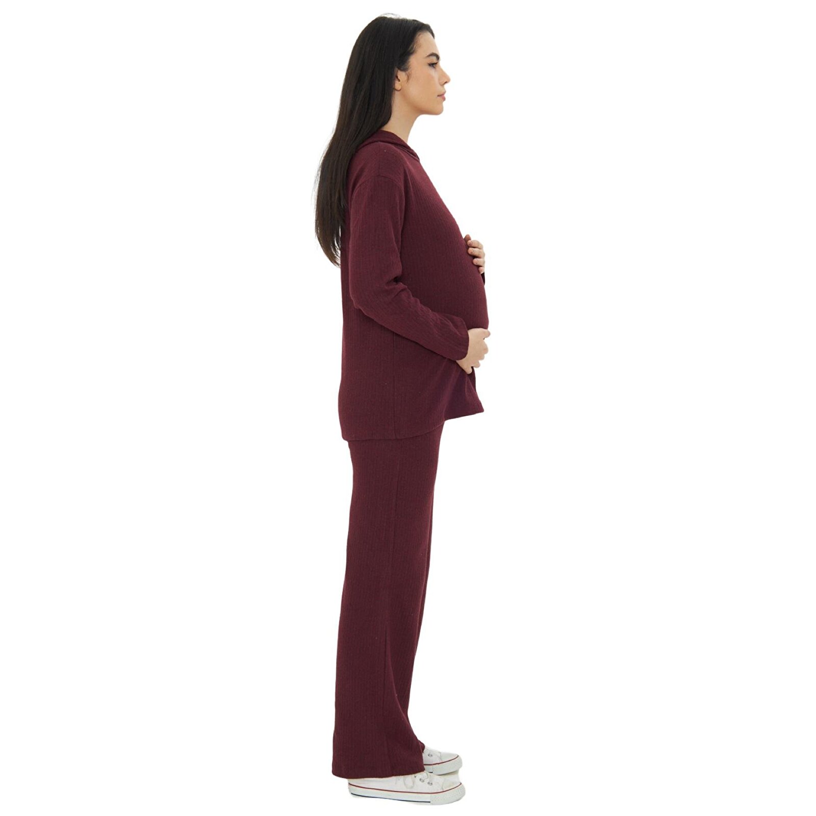 طقم حوامل من قطعتين مع قلنسوة بلون بوردو للنساء