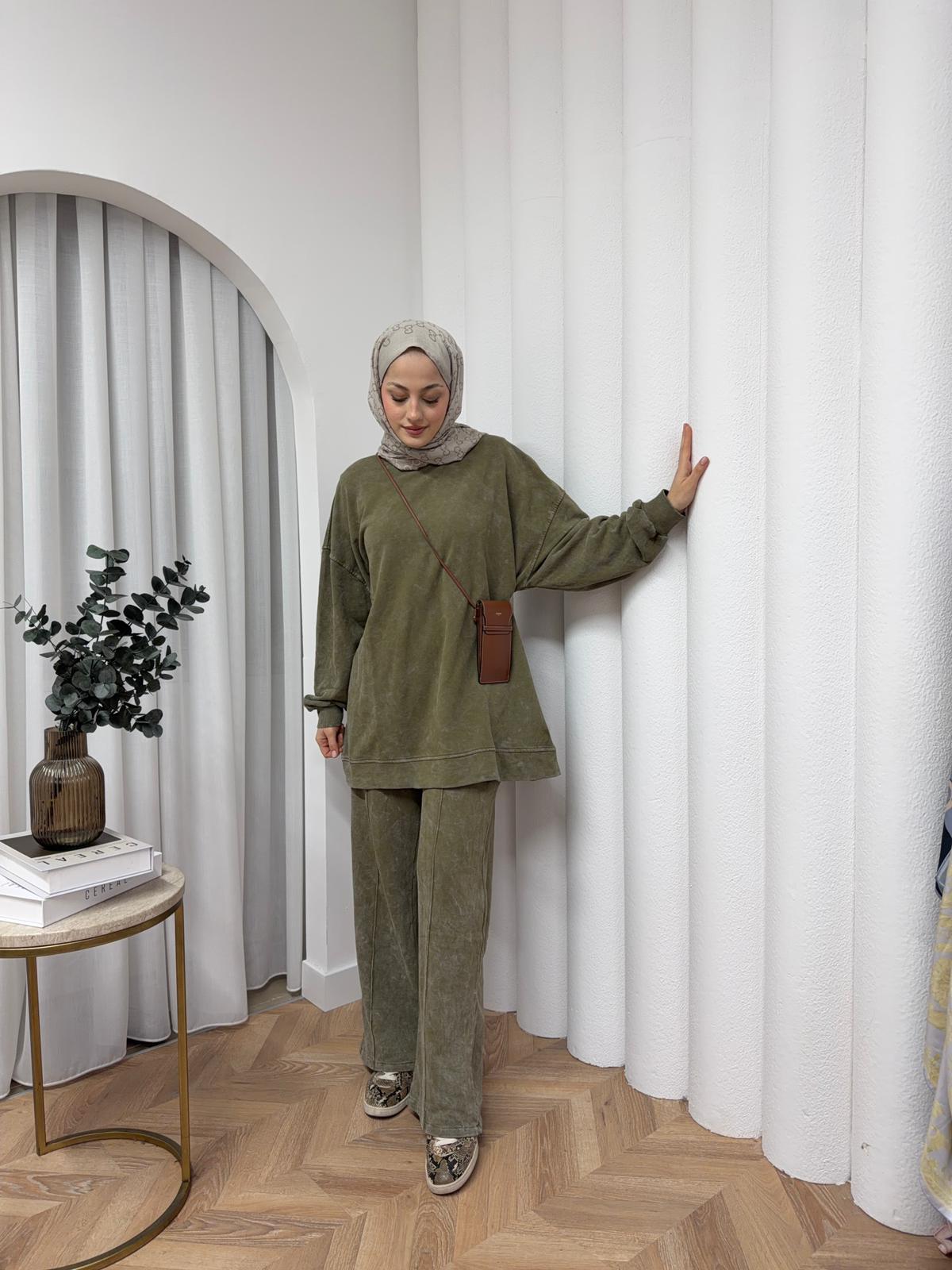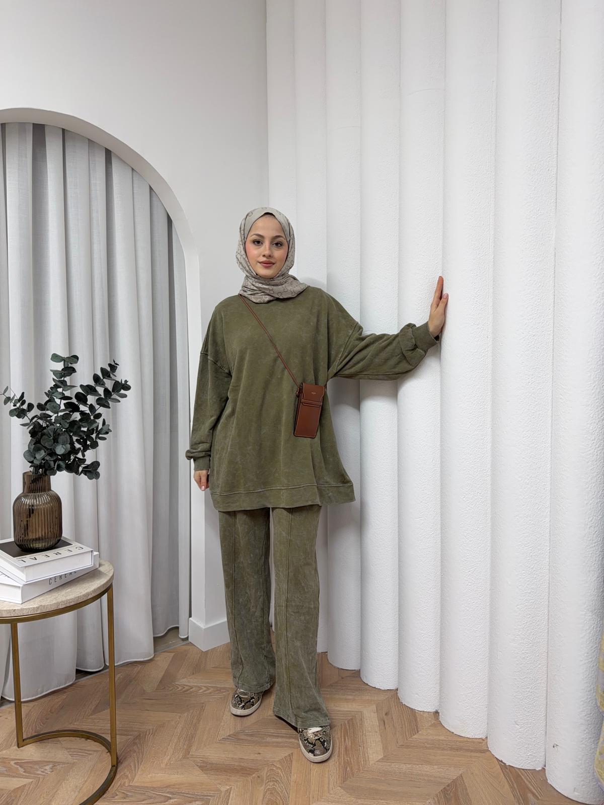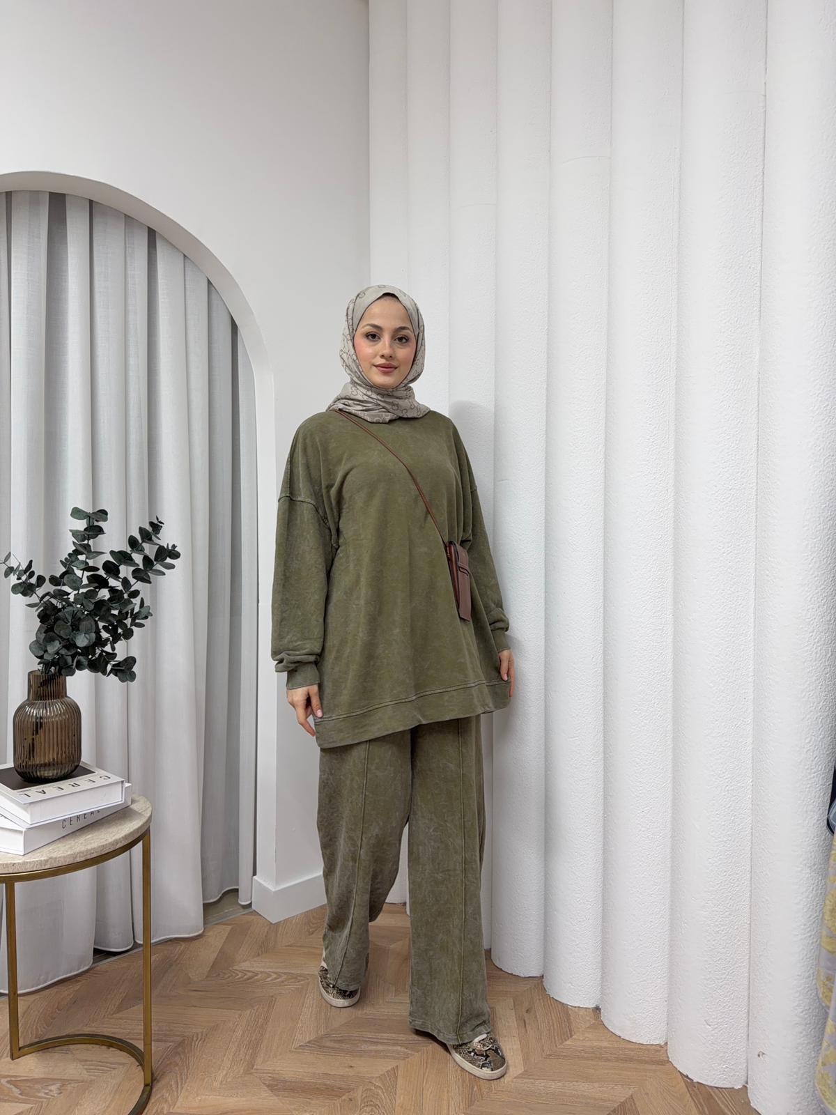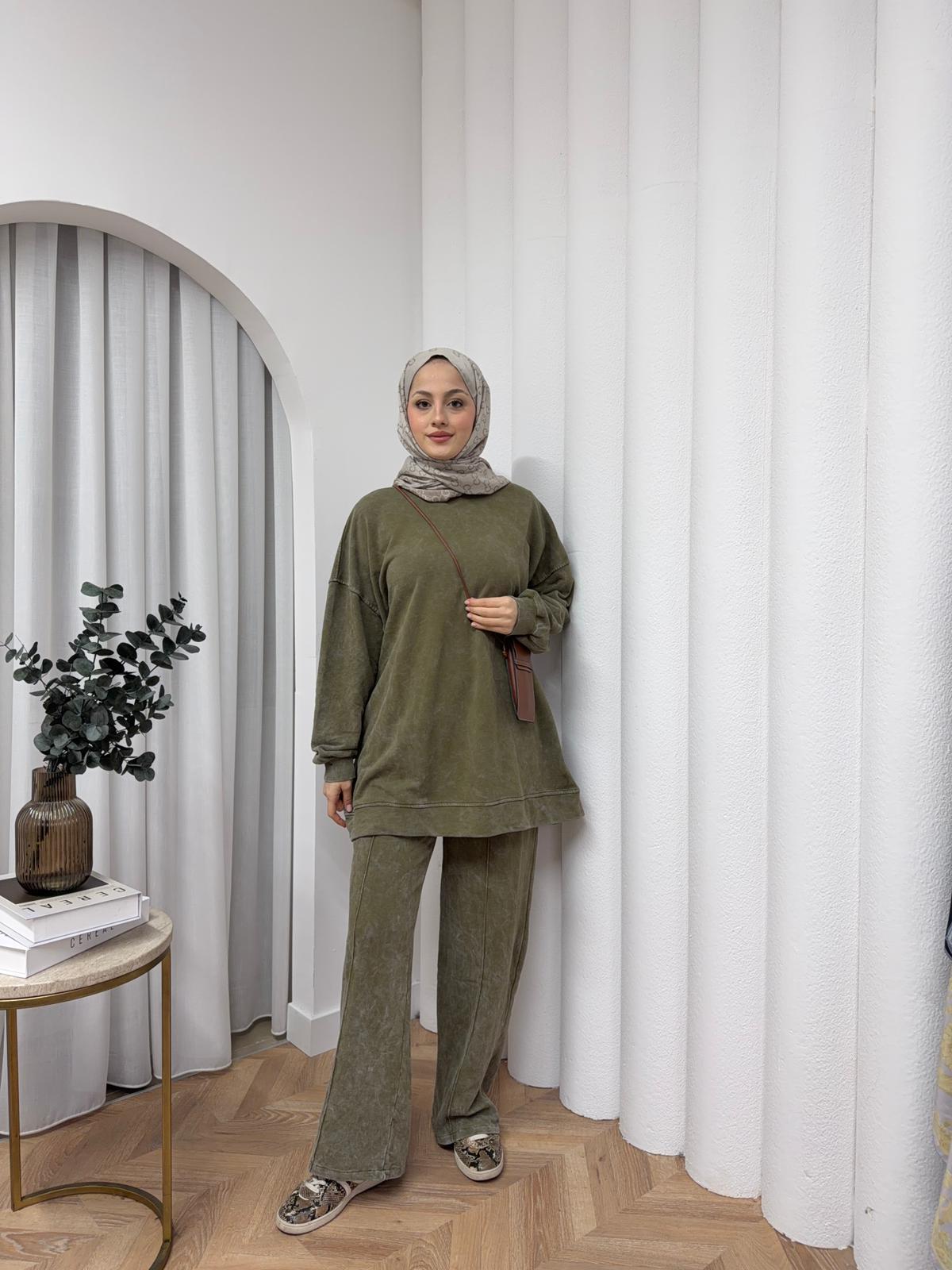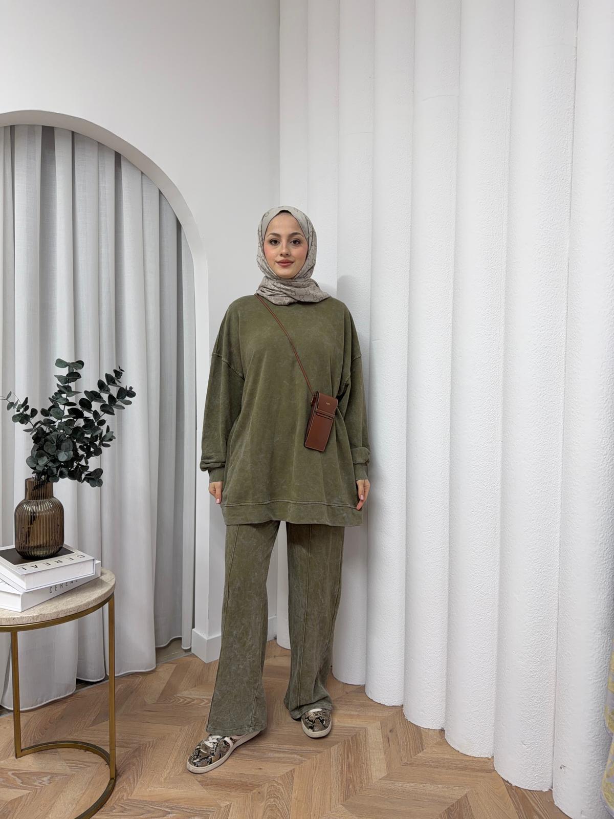 طقم رياضي من قطعتين بتصميم باتيك بلون الكاكي