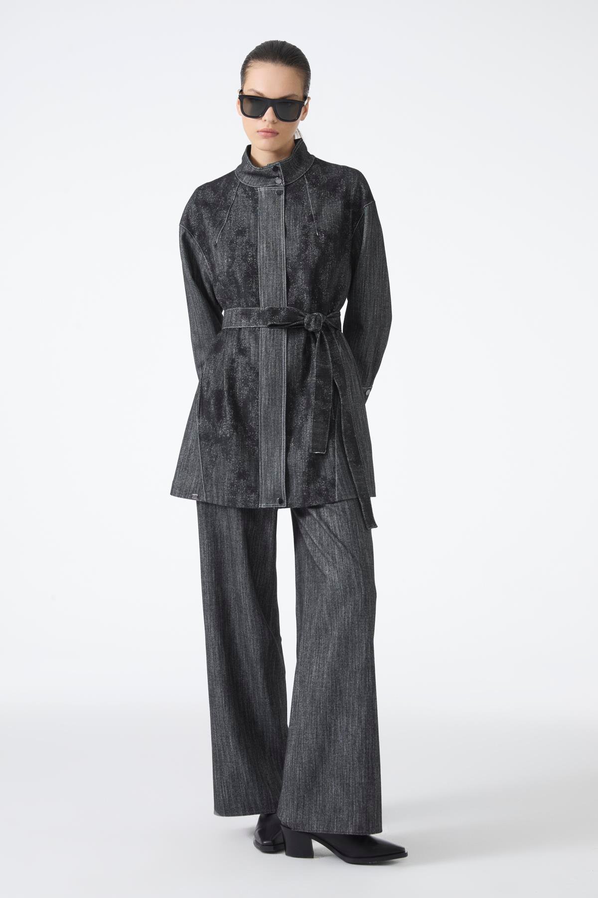 طقم سترة بحزام وبنطلون أسود TK-1718