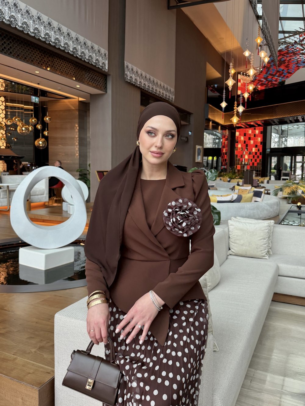 طقم السترة المزدوج هذا بتفاصيله الأنيقة هو خيار متعدد الاستخدامات يمكن استخدامه في العديد من المناسبات، من الدعوات الخاصة إلى الأناقة اليومية. إنه الخيار المثالي للسيدات اللواتي يرغبن في الظهور بأناقة مع الشعور بالراحة. باهتمامه الدقيق بالتفاصيل ووقفته الراقية، يصبح الخيار الأمثل لمن يرغبن في الظهور بأناقة في كل مكان. هذا الطقم مع السترة، الذي يمكن الانتقال به بسهولة من النهار إلى الليل، يصبح قطعة المنقذ في خزانة ملابسك.