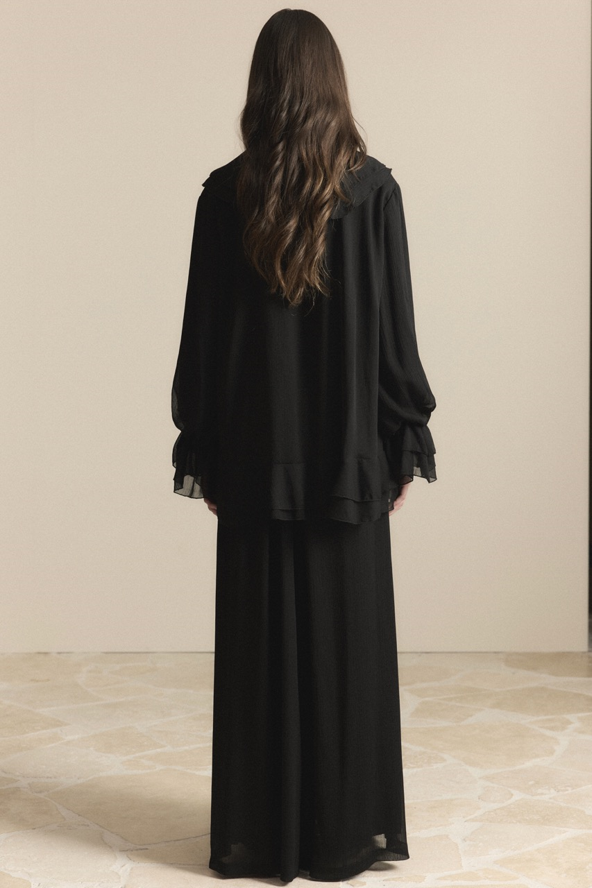 طقم شيفون بفصوص على الياقة والأكمام – أسود