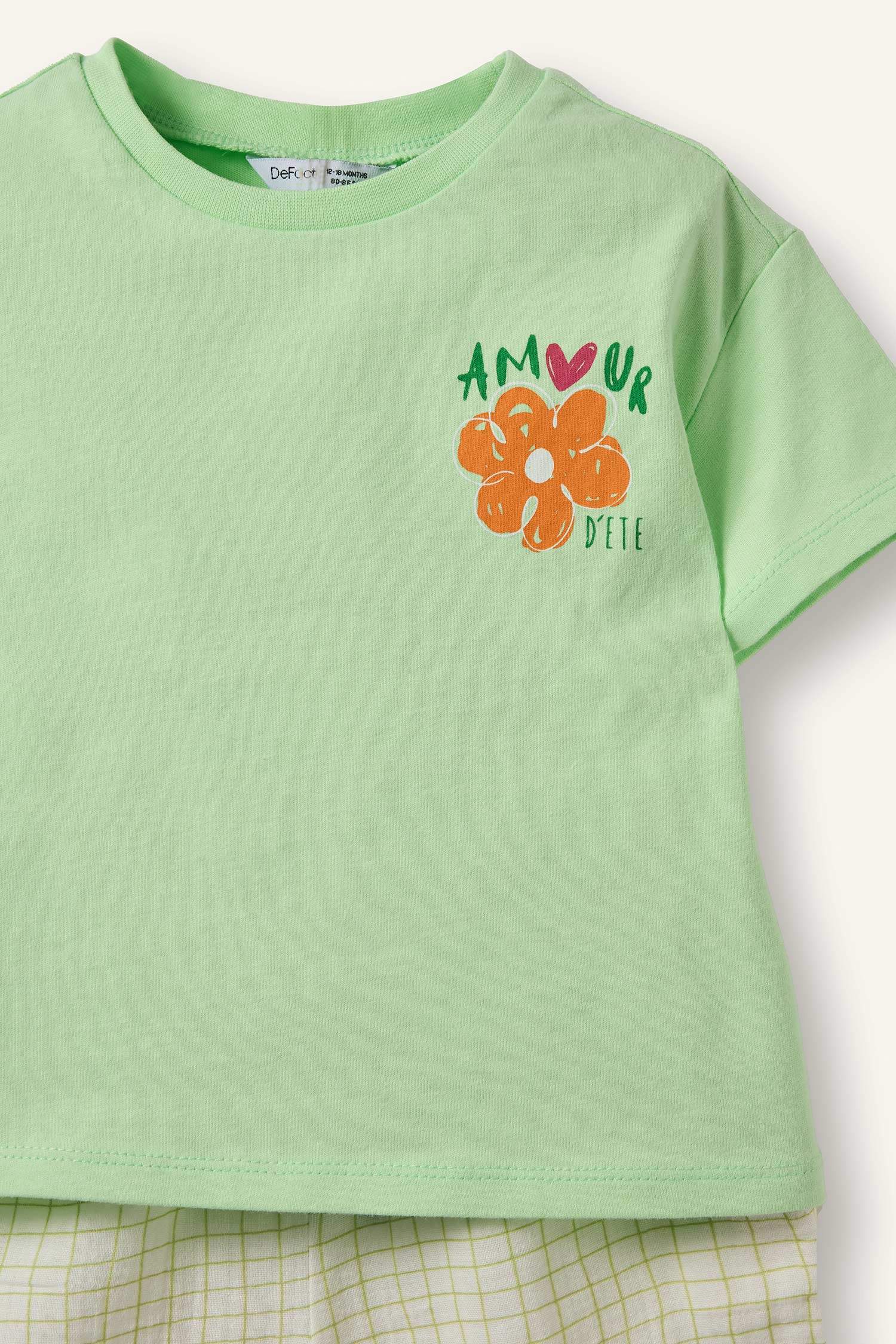 طقم فتاة رضيعة من قطعتين: تيشرت مزهر وسراويل مربعة