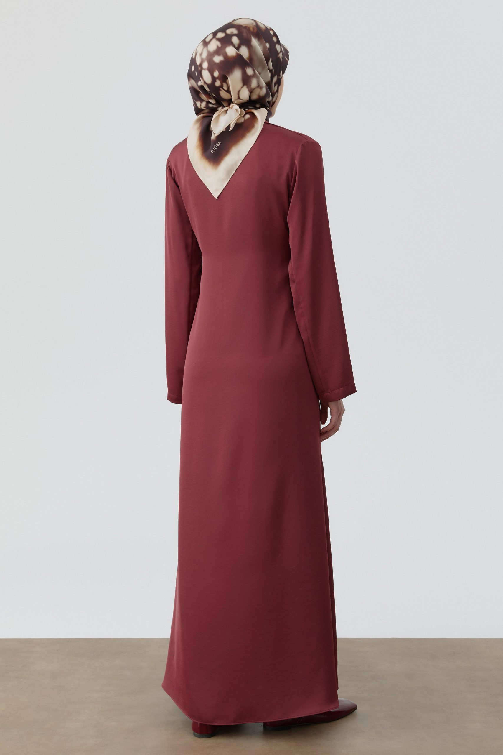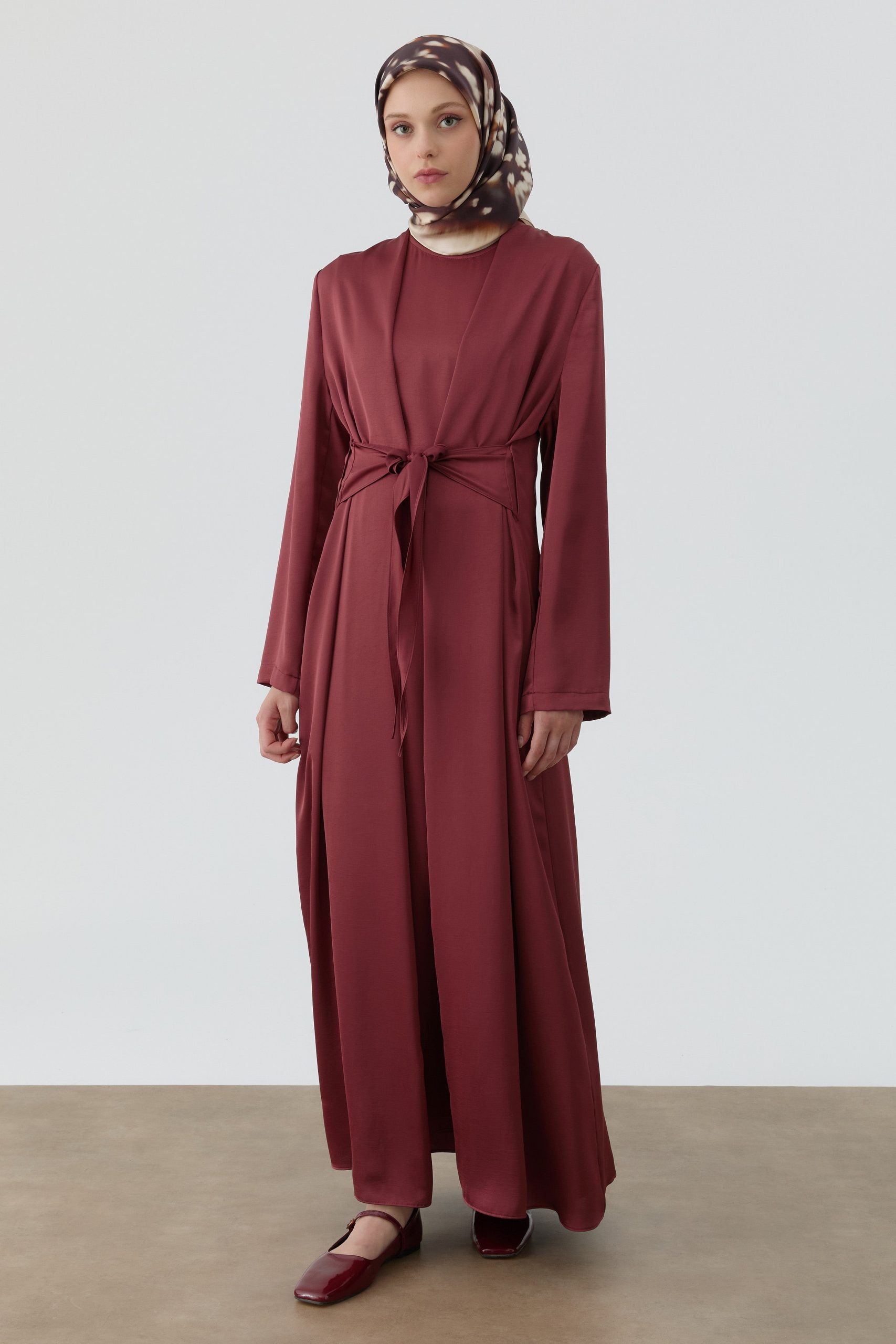 طقم فستان بحزام – بورجوندي
