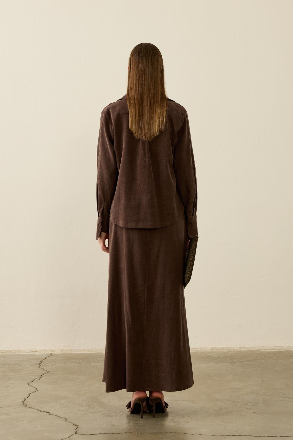 طقم فستان بيلا بيللي ذو القطع غير المتناظر مع بطانة ليووسيل باللون البني