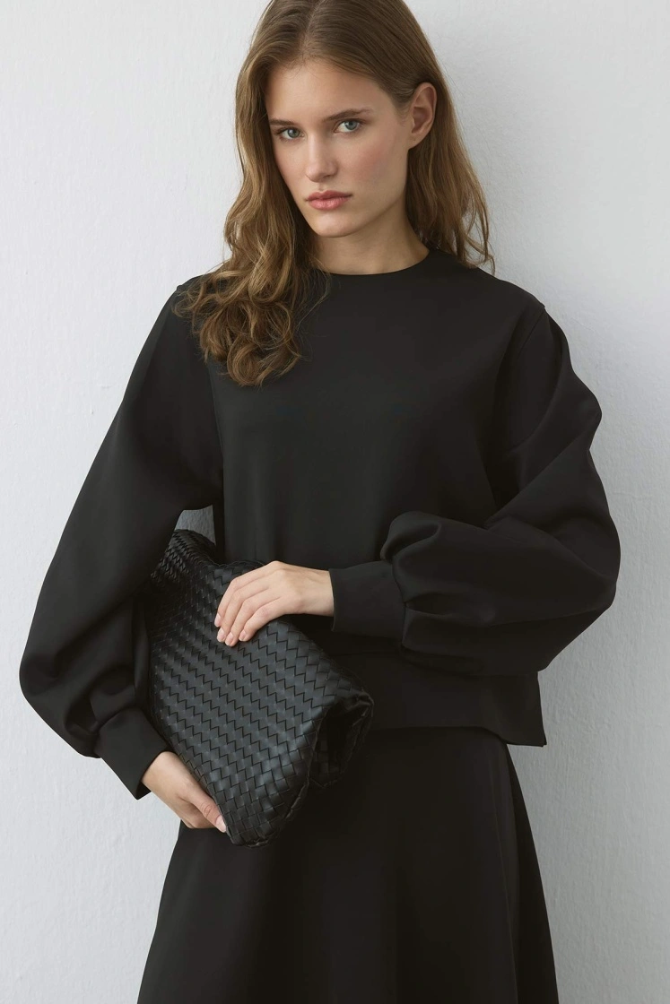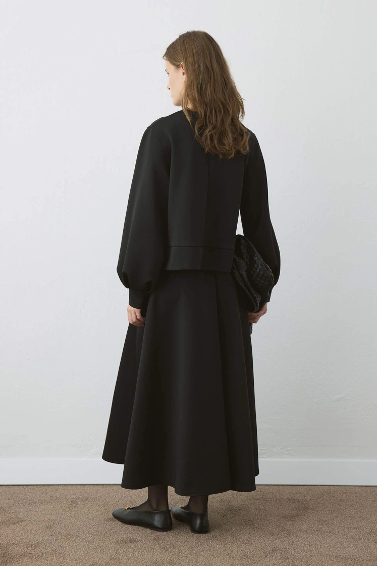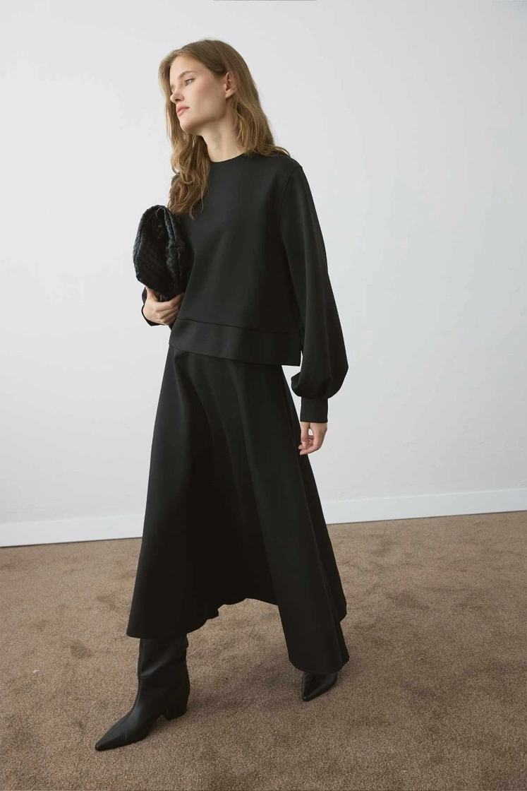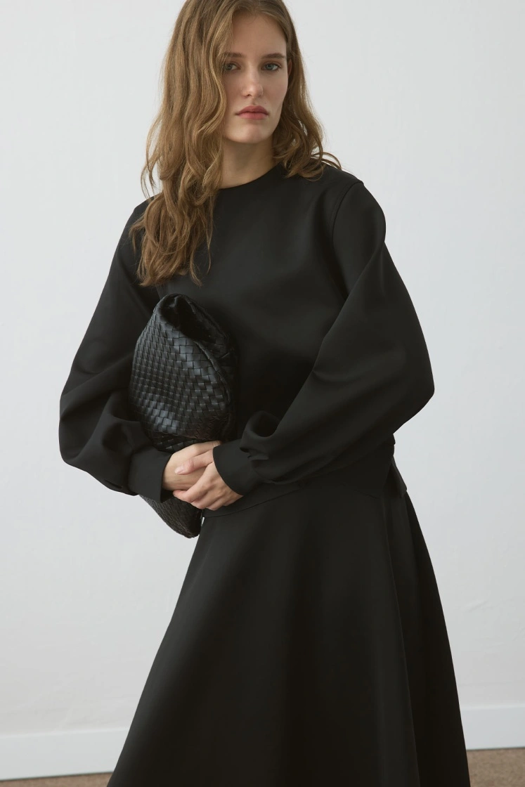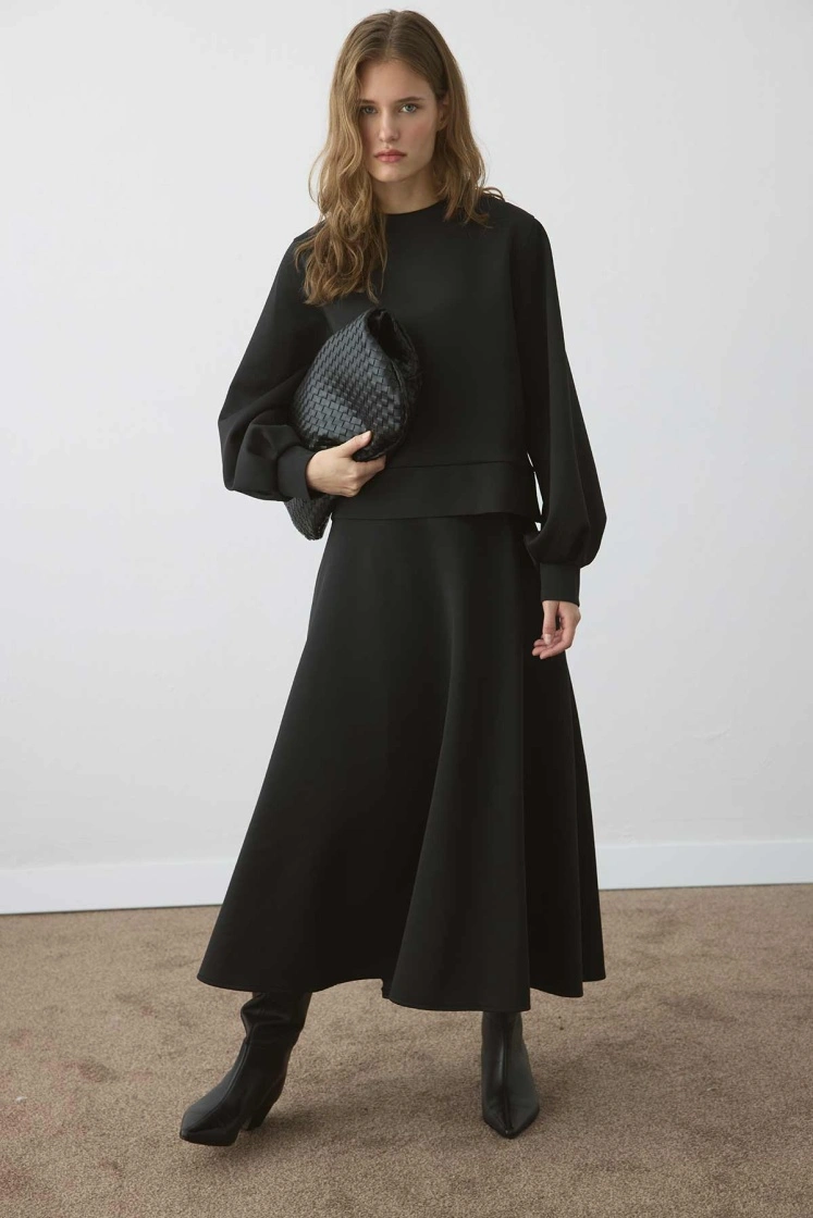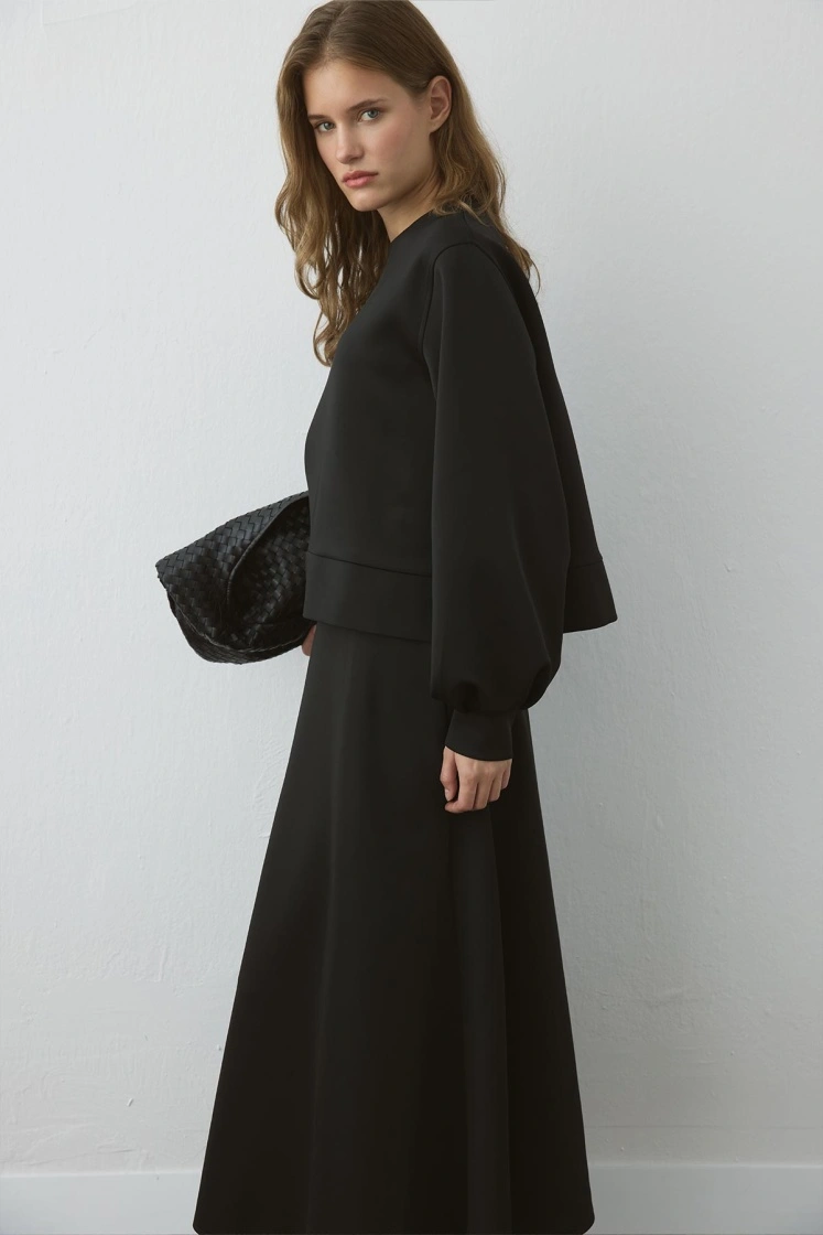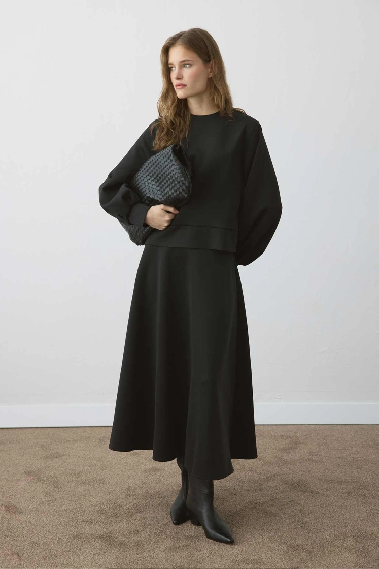 طقم فستان سكوبا أسود بأكمام بالون