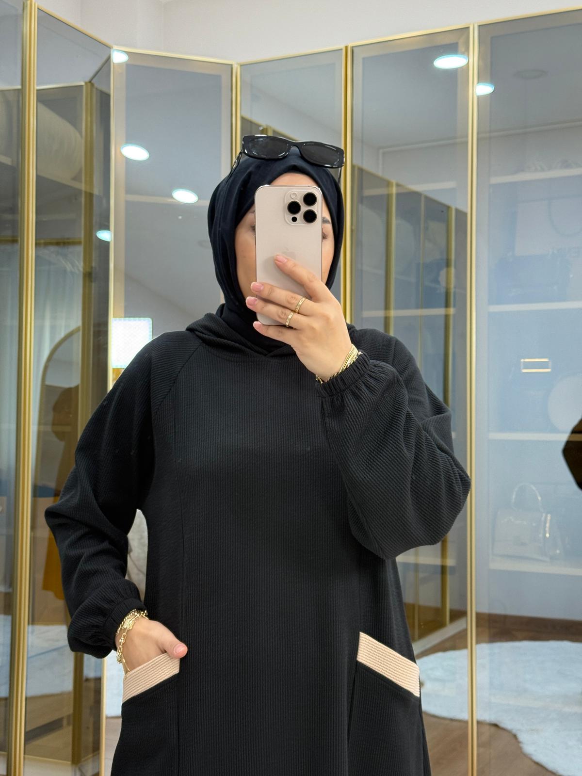 الوسوم: matching set, ملابس محتشمة, trimmed set, twill fabric