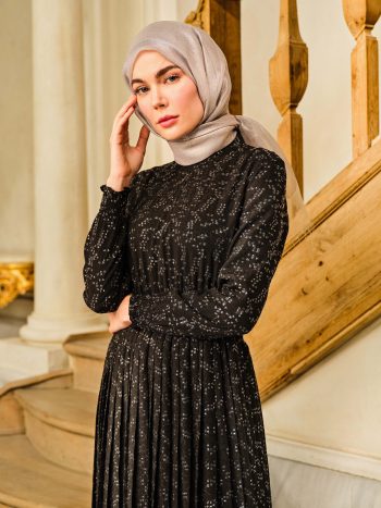فستان مطوي بتفاصيل مطاطية – أسود