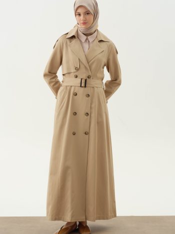 معطف بفتحة وتقاطع – بيج