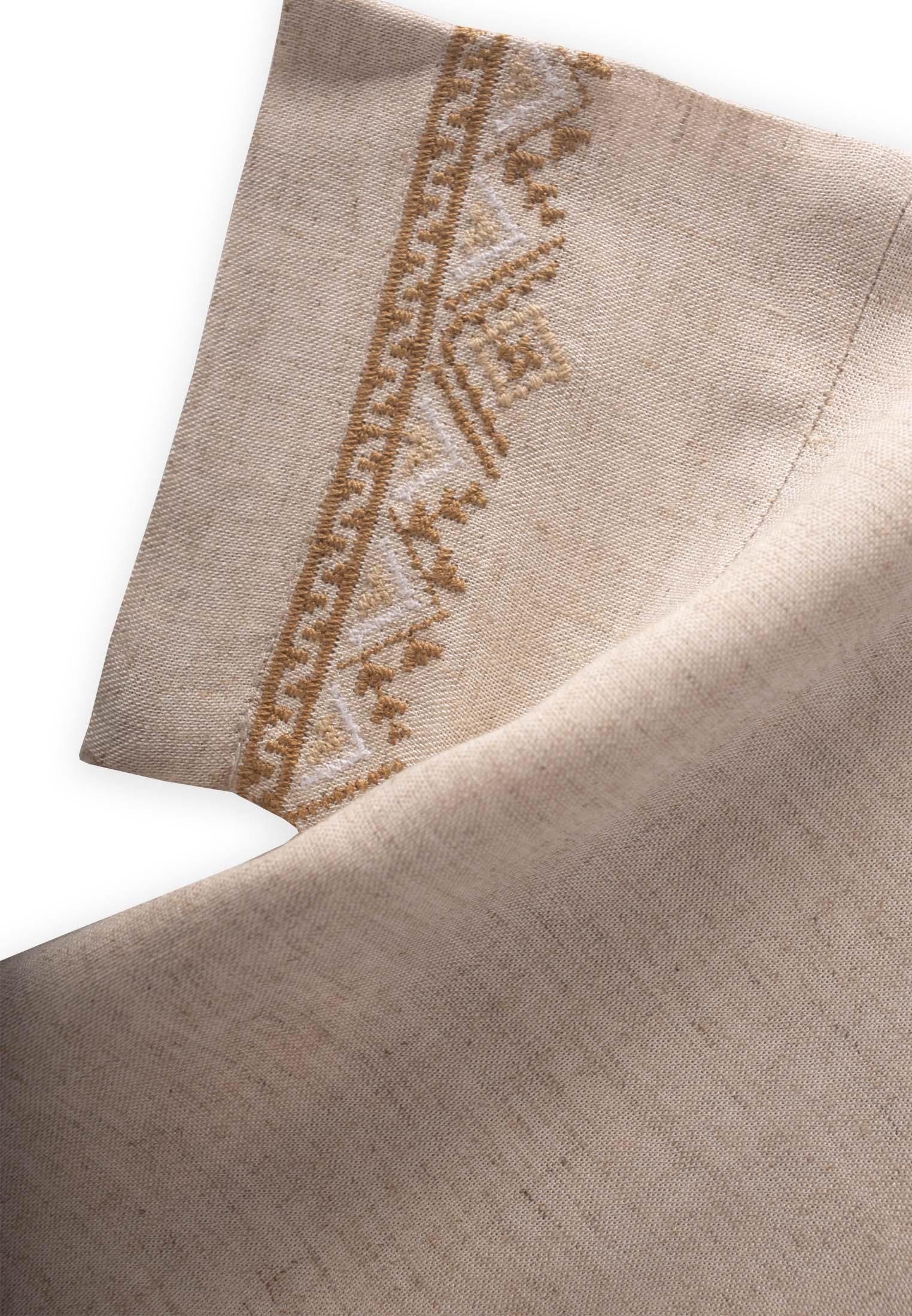 طقم كتان قميص وسراويل قصيرة بتطريز على الأكملمناسب للأعمار 2-7 باللون الطبيعي