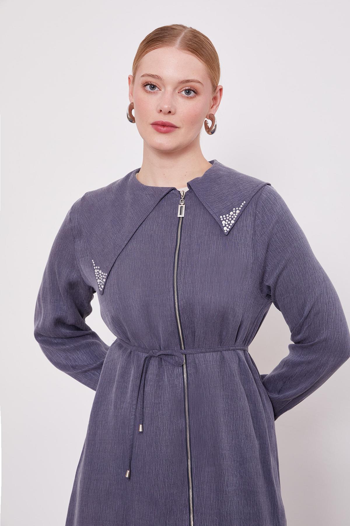 طقم كوبرا ثنائي بزينة حجرية على الياقة باللون الأزرق الداكن