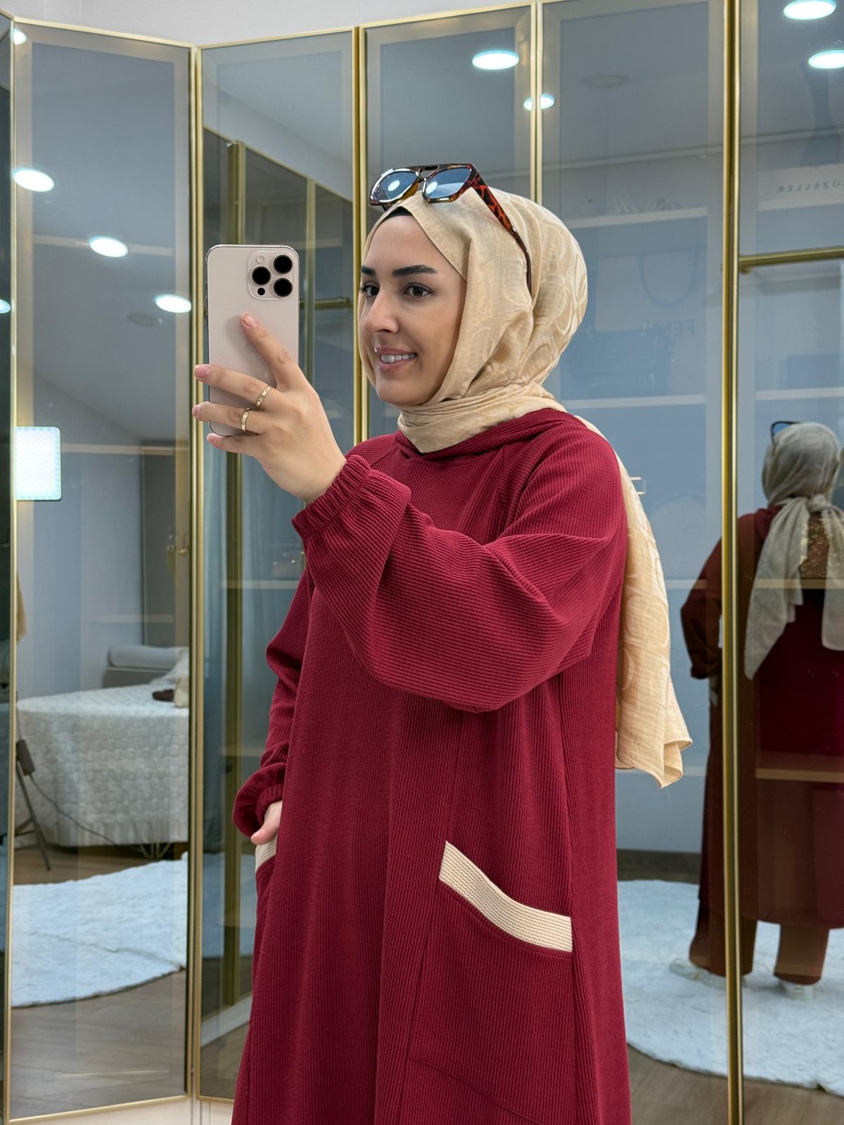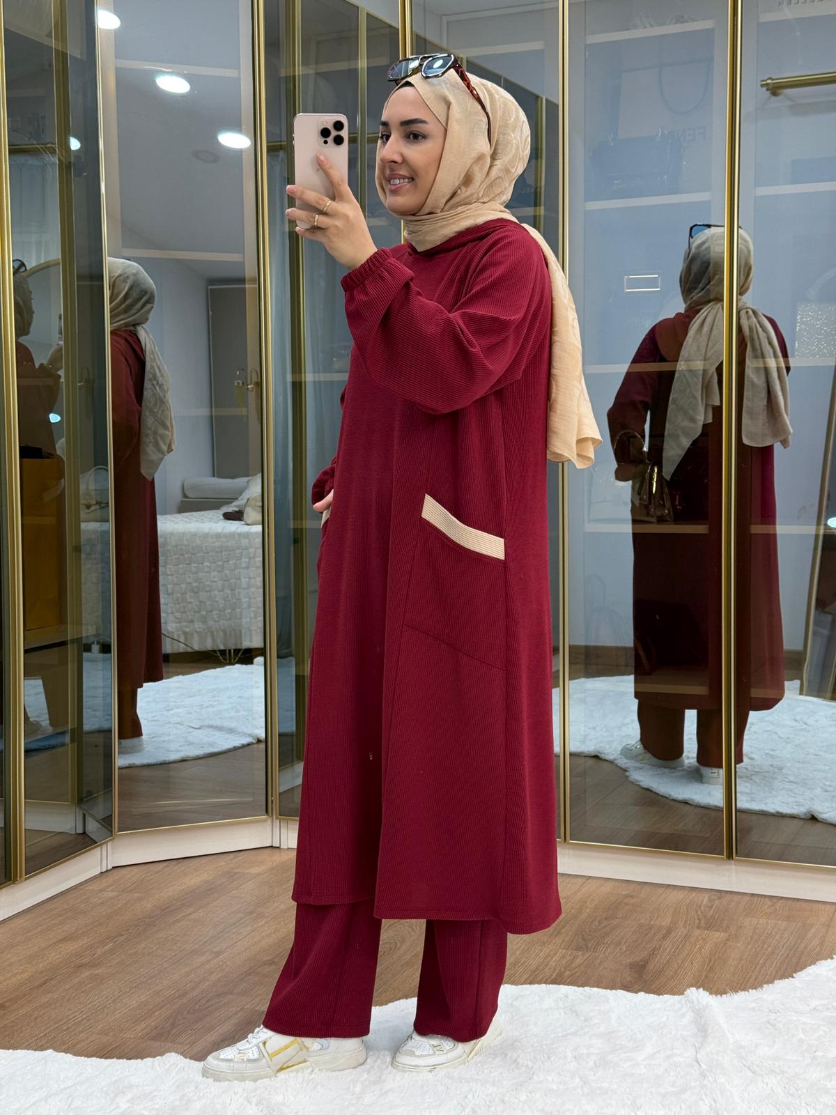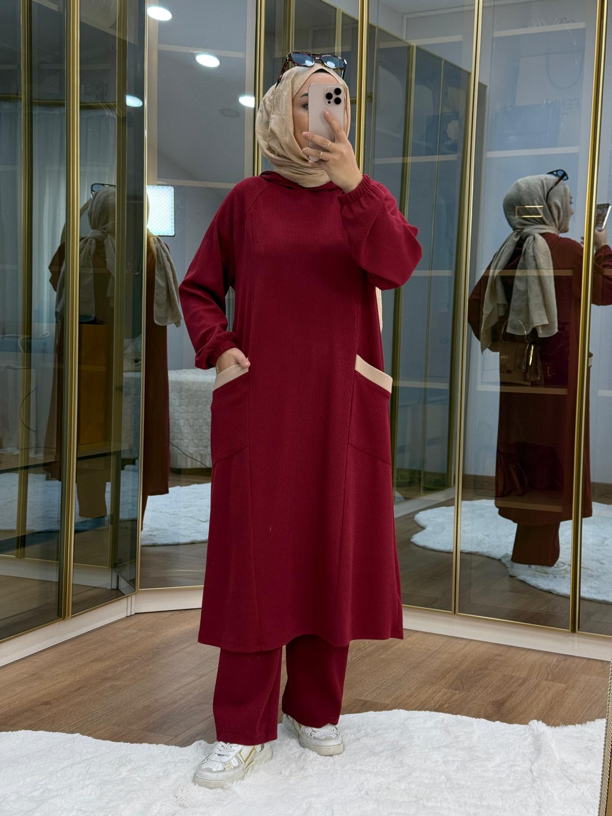 العلامات: bordeaux, Corduroy Fabric, modest wear set, trimmed set