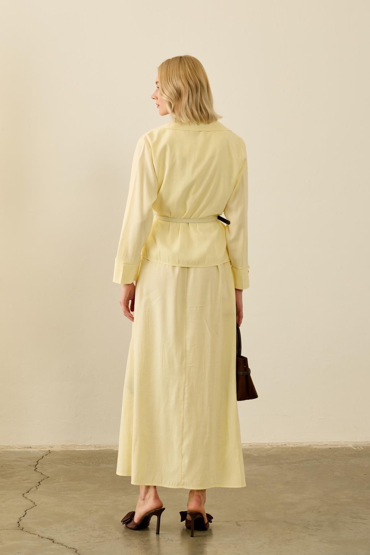 طقم مارا مع معطف ملفوف وفستان داخلي بأزرار باللون الأصفر