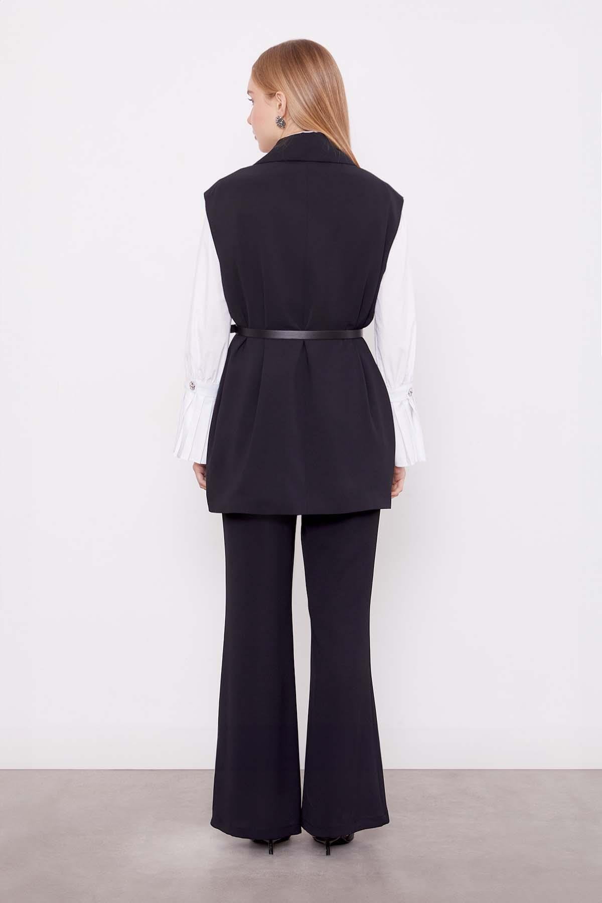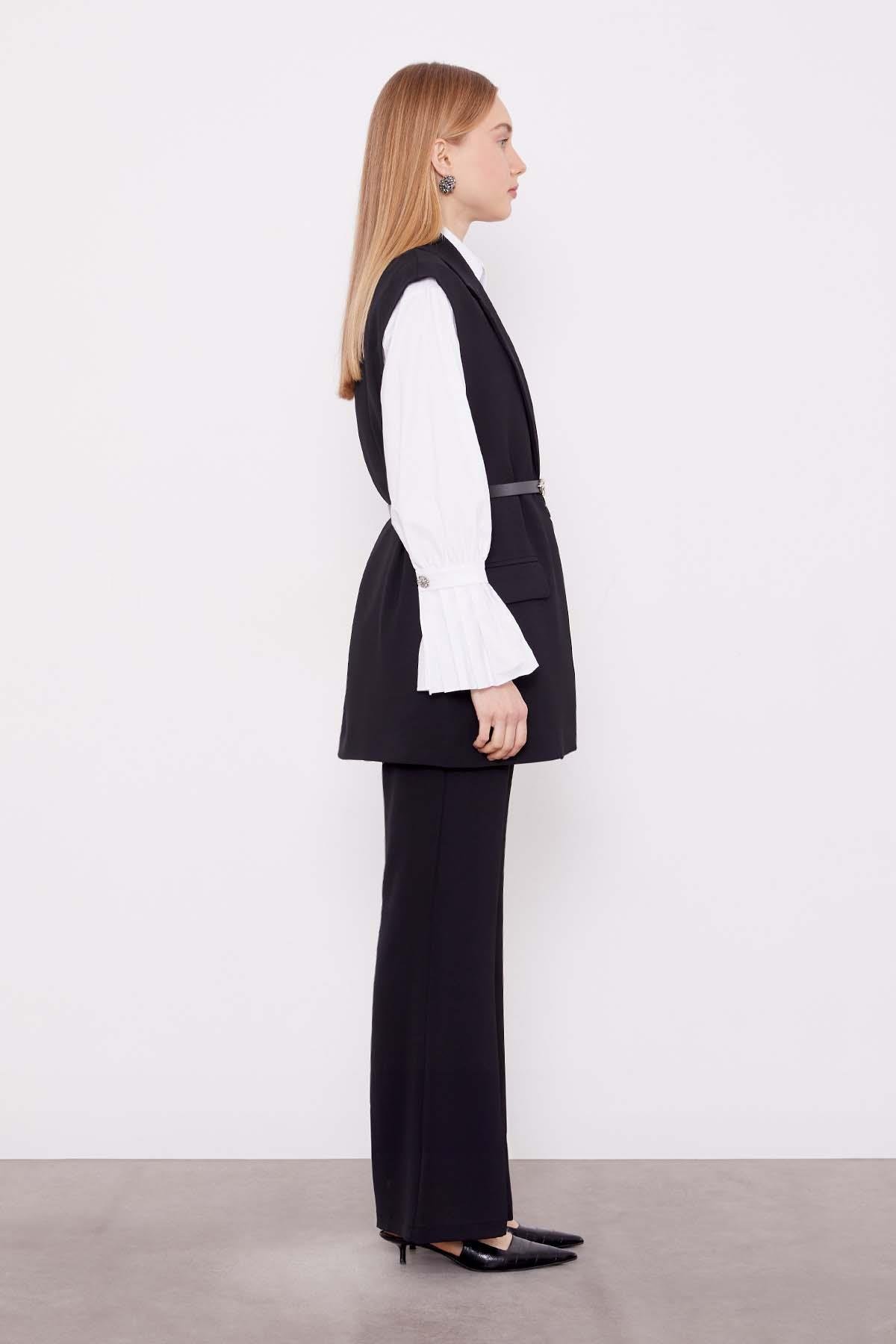 طقم السترة المزدوج هذا بتفاصيله الأنيقة هو خيار متعدد الاستخدامات يمكن استخدامه في العديد من المناسبات، من الدعوات الخاصة إلى الأناقة اليومية. إنه الخيار المثالي للسيدات اللواتي يرغبن في الظهور بأناقة مع الشعور بالراحة. باهتمامه الدقيق بالتفاصيل ووقفته الراقية، يصبح الخيار الأمثل لمن يرغبن في الظهور بأناقة في كل مكان. هذا الطقم مع السترة، الذي يمكن الانتقال به بسهولة من النهار إلى الليل، يصبح قطعة المنقذ في خزانة ملابسك.