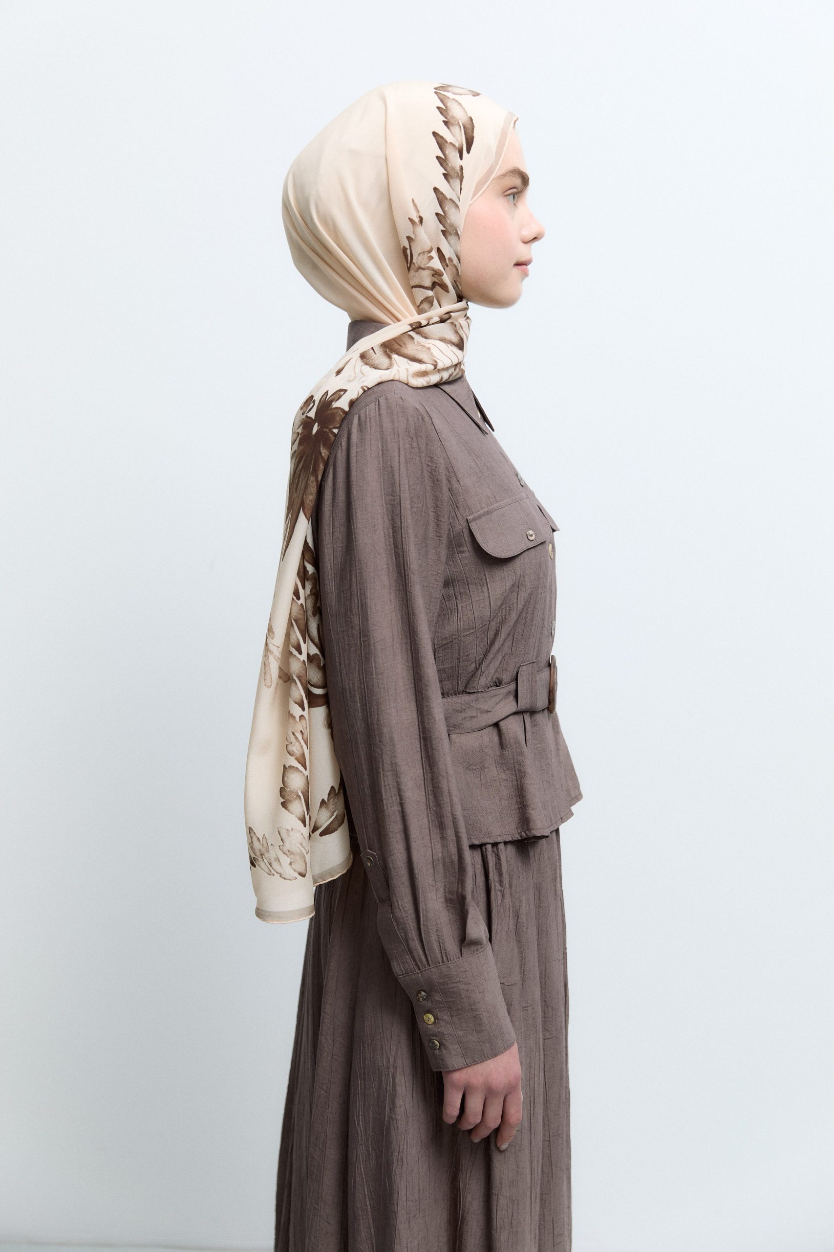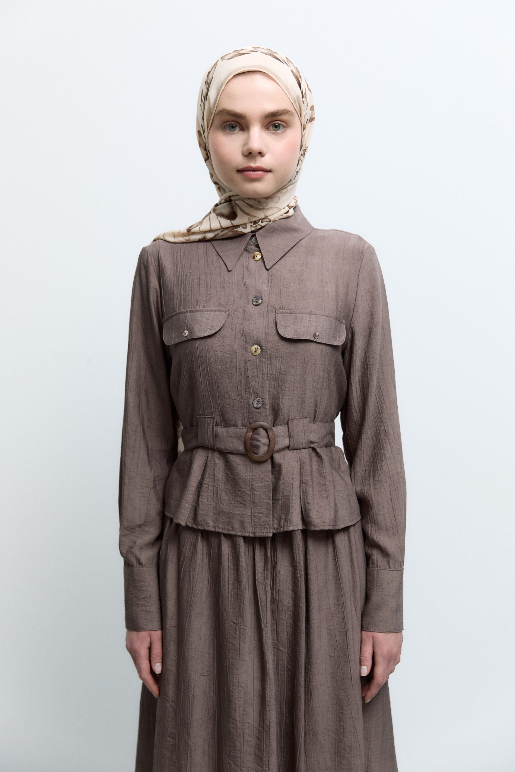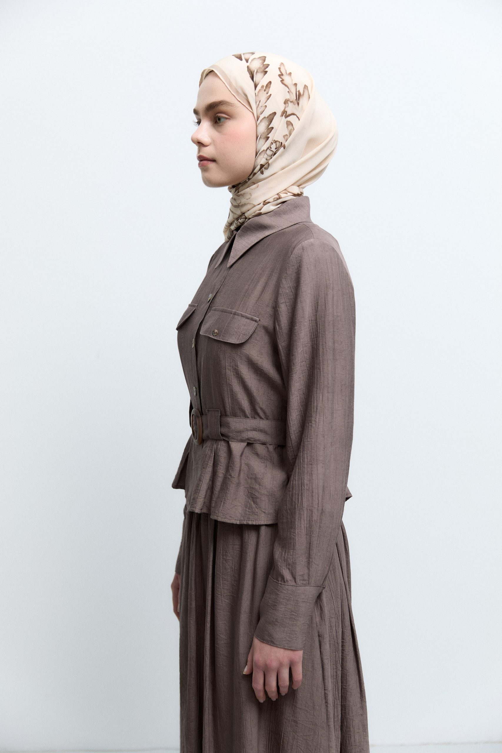 طقم مطوي من الأمام – لون القهوة