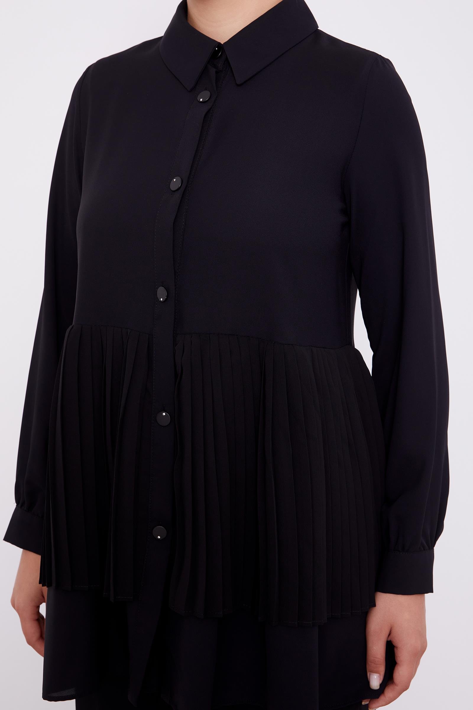 طقم من قطعتين من قميص الشيفون المطوي باللون الأسود