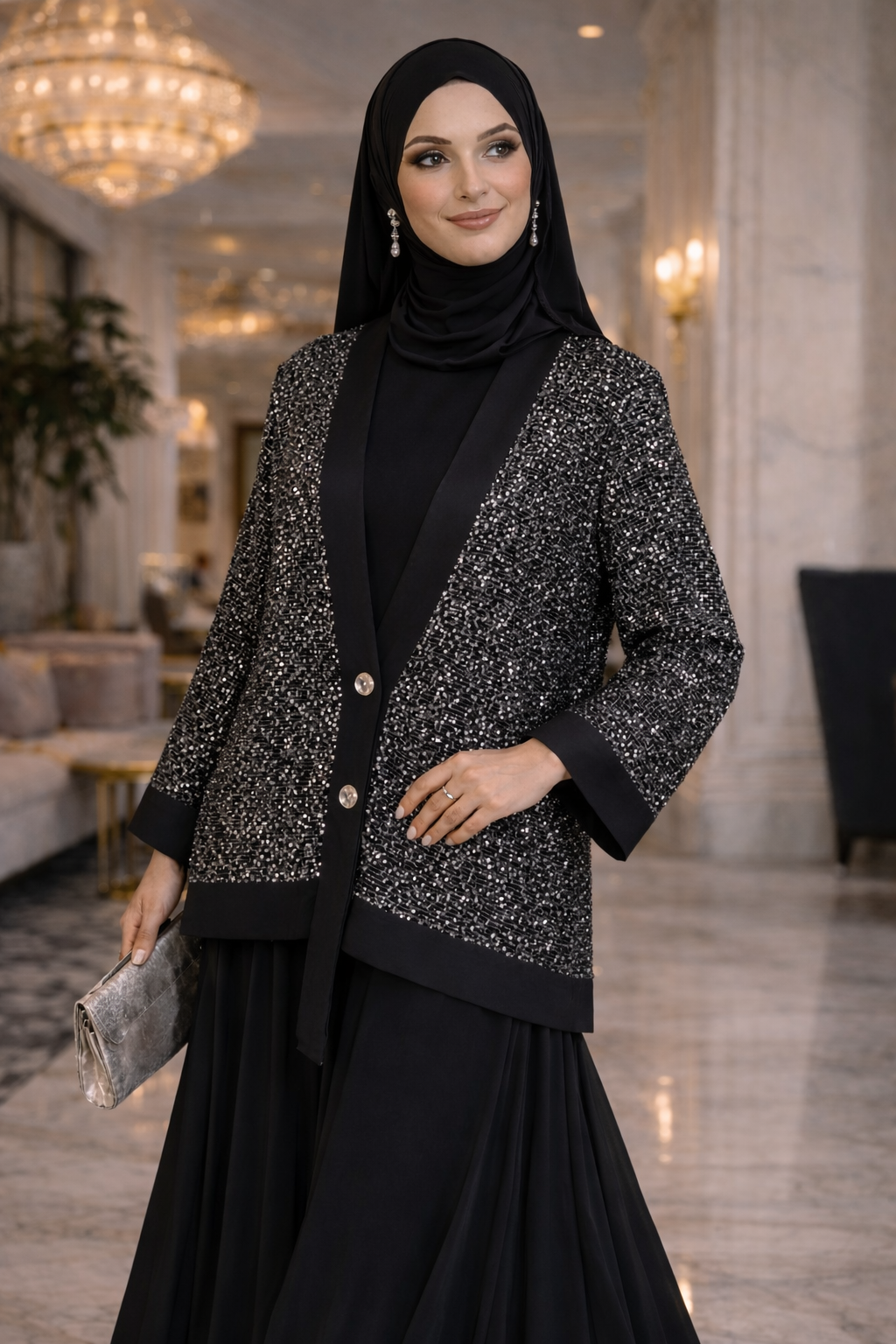 يجمع طقم موكا اللامع بين الأناقة والراحة، حيث يضفي اللون الأسود لمسة من الفخامة على كل لحظة. مصنوع من قماش عالي الجودة بتصميم عصري، يقدم هذا الطقم راحة طوال اليوم ليكون قطعة أساسية لا غنى عنها في خزانة ملابسك.