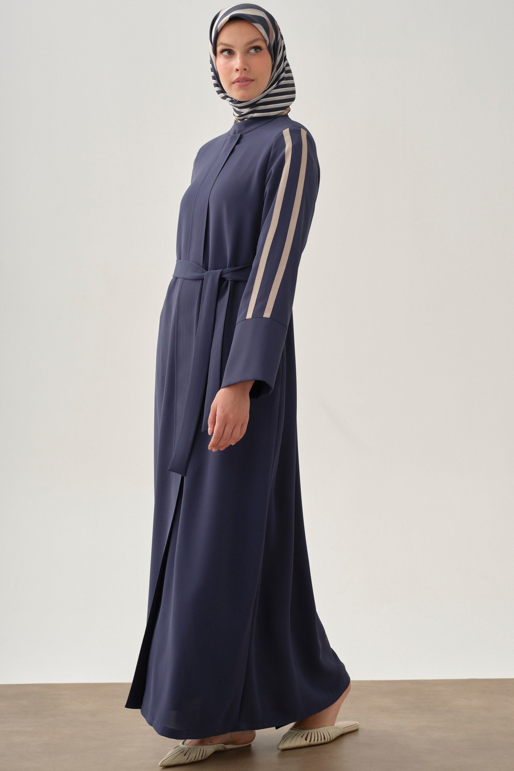 عباءة إنديجو بتفاصيل جروغرين على الأكمام