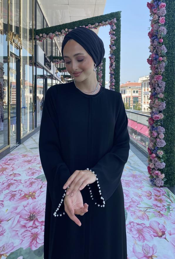 ارتقِ بأناقتك المحتشمة مع هذه العباءة الأنيقة المزينة بتفاصيل لؤلؤية رائعة. مصممة لتجمع بين الرقي والجمال، تقدم لكِ أسلوباً خالداً مثالياً للمناسبات الخاصة أو الأناقة اليومية.