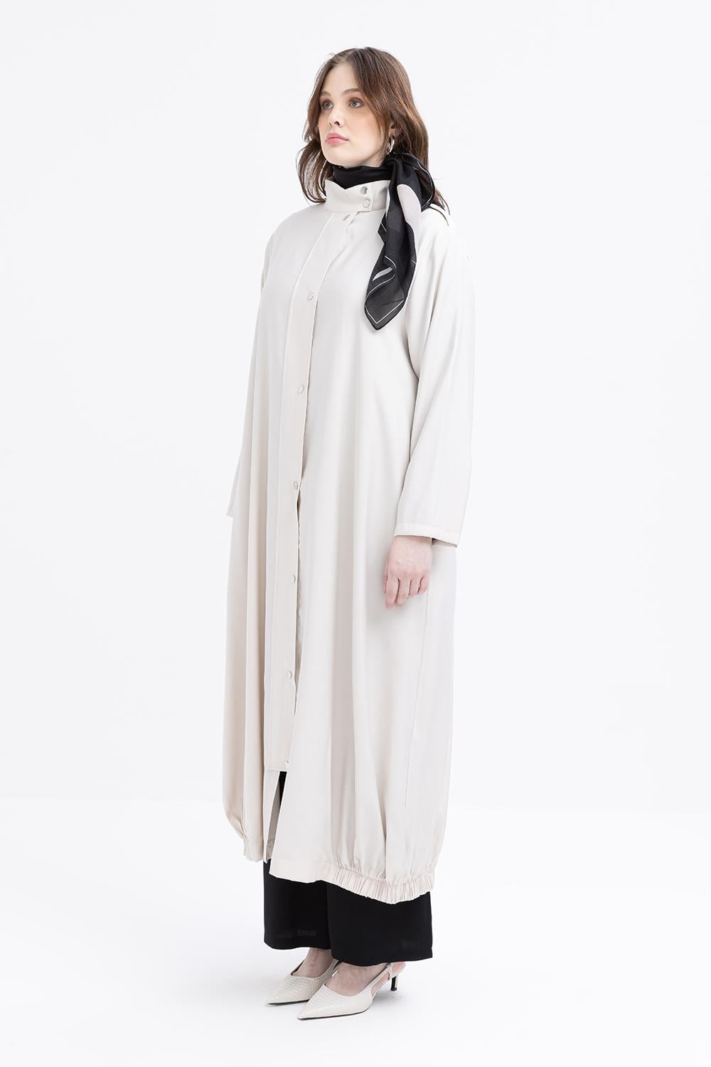 عباءة بحاشية مرصعة بحجارة ومطاطية بإغلاق مشبكي