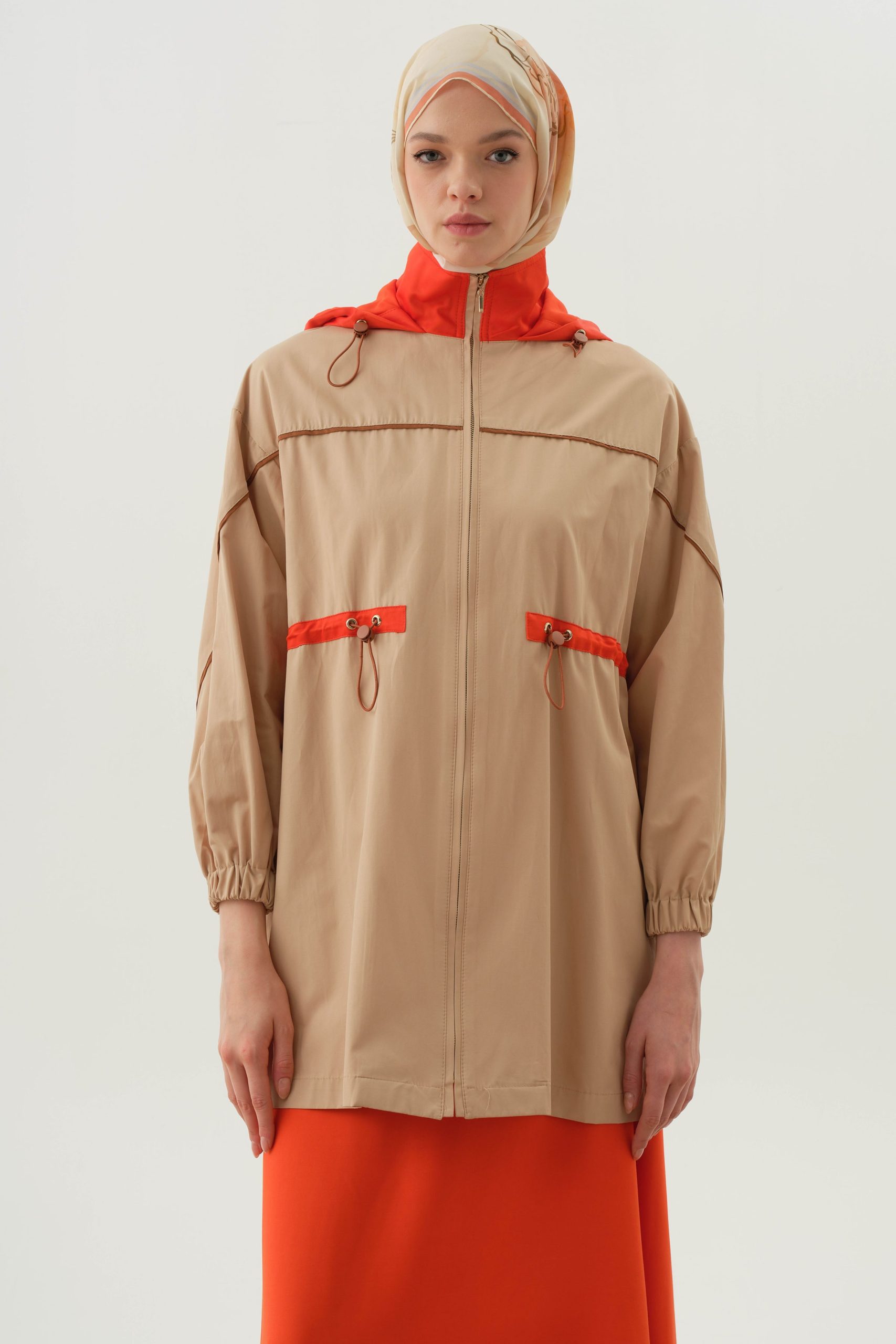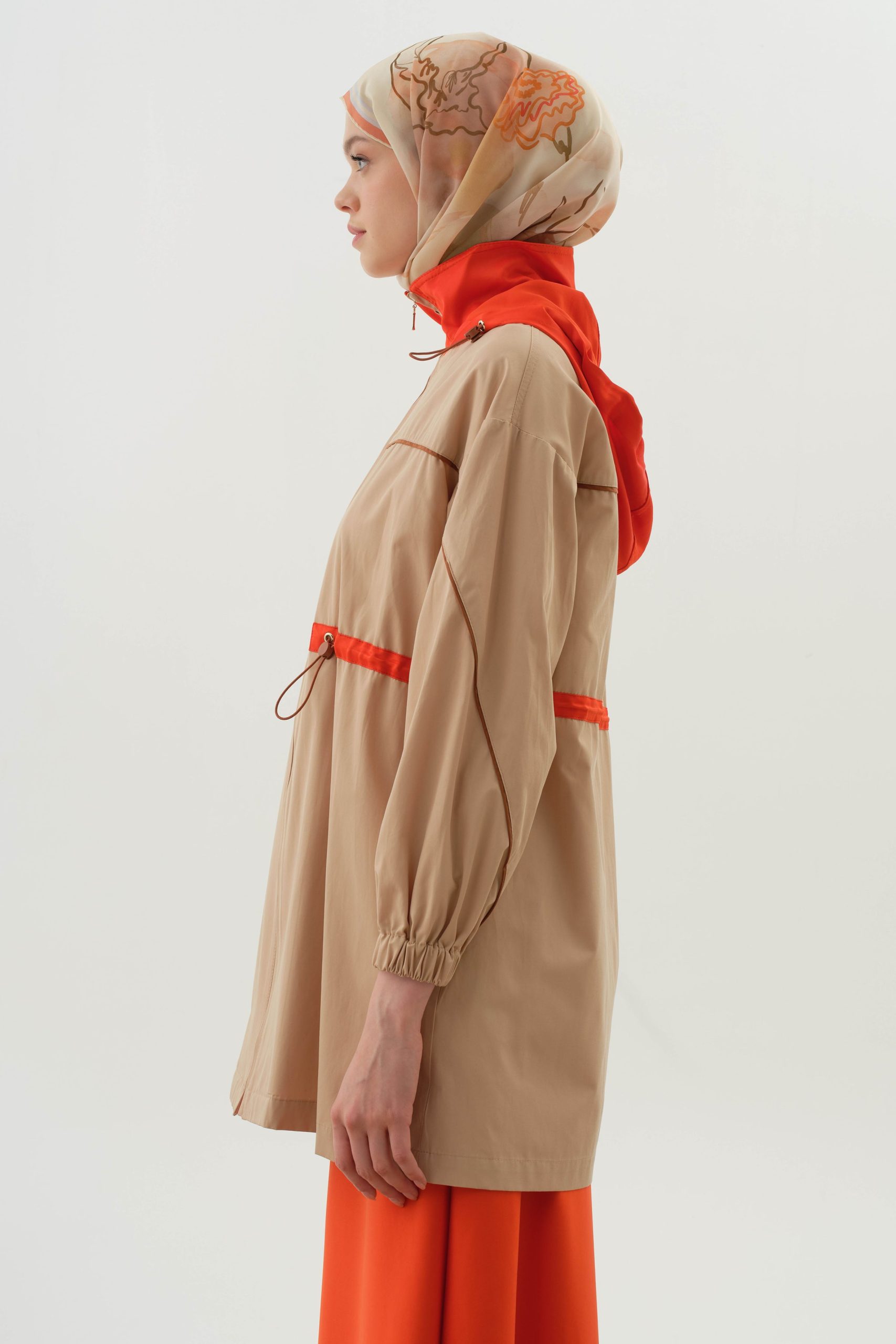 عباءة بغطاء للرأس وخصر مطاطي – بيج