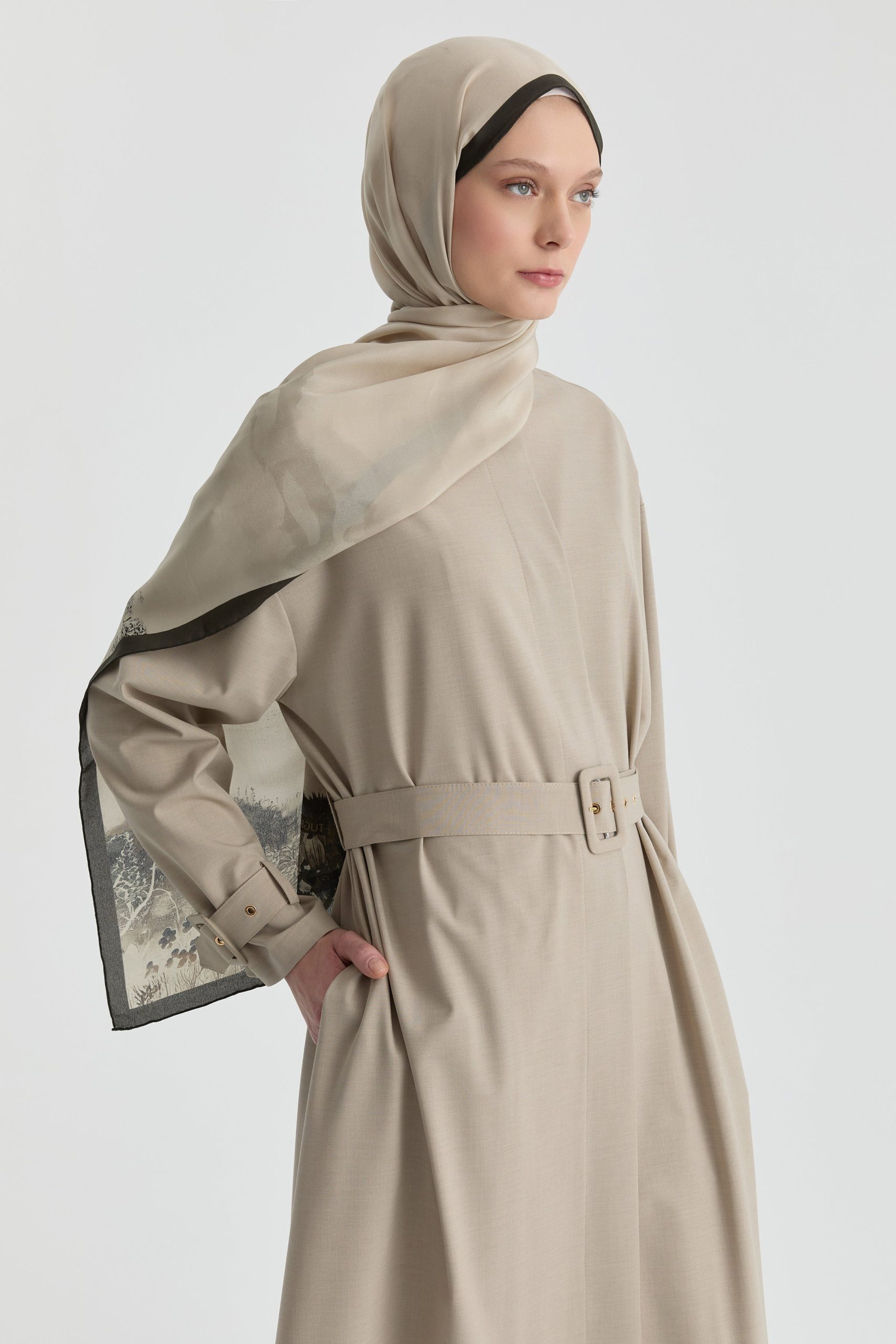 عباءة ذات أزرار مخفية – البيج