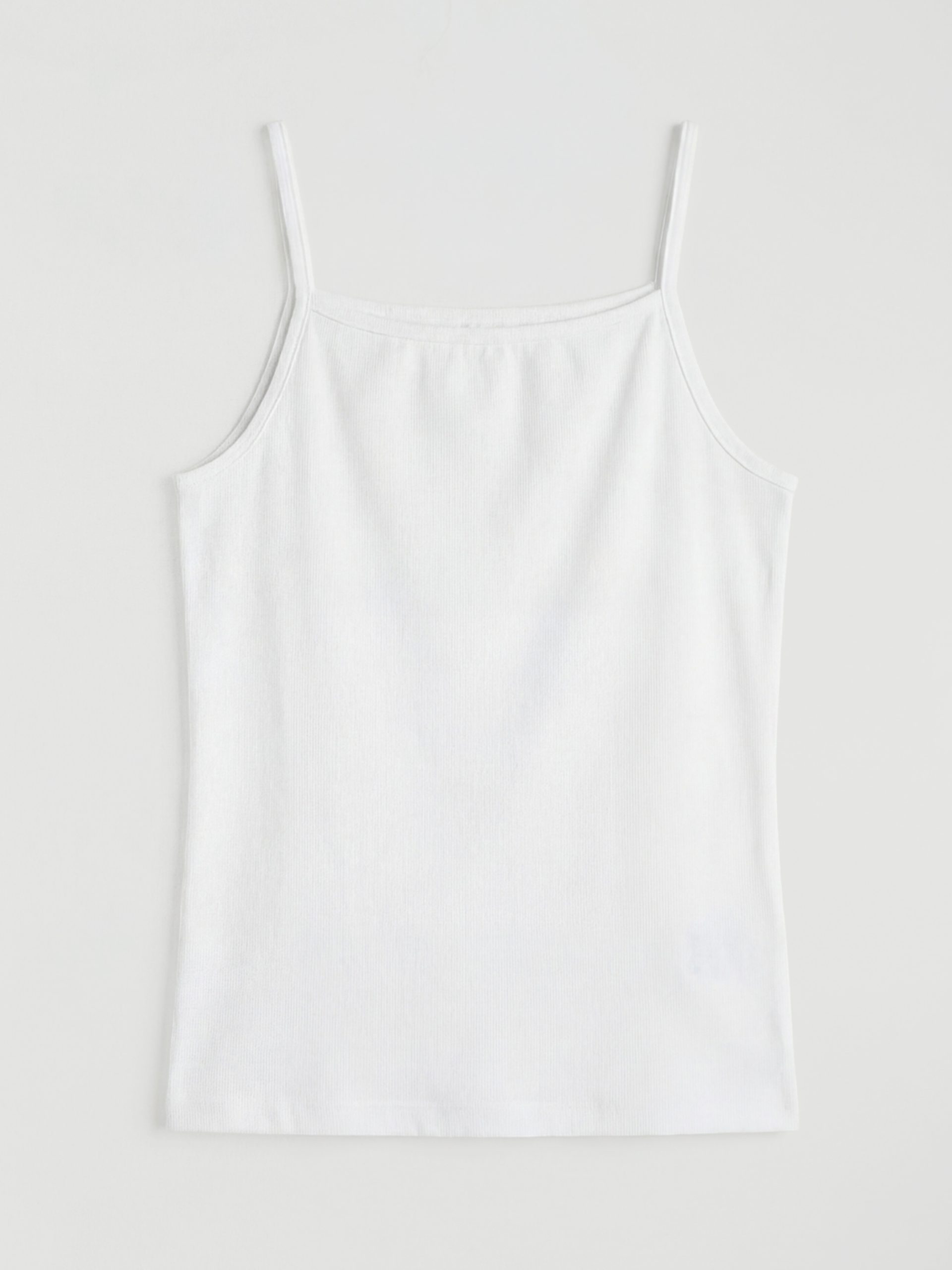 فانلة بناتية بيضاء برقبة مربعة وحمالات رفيعة