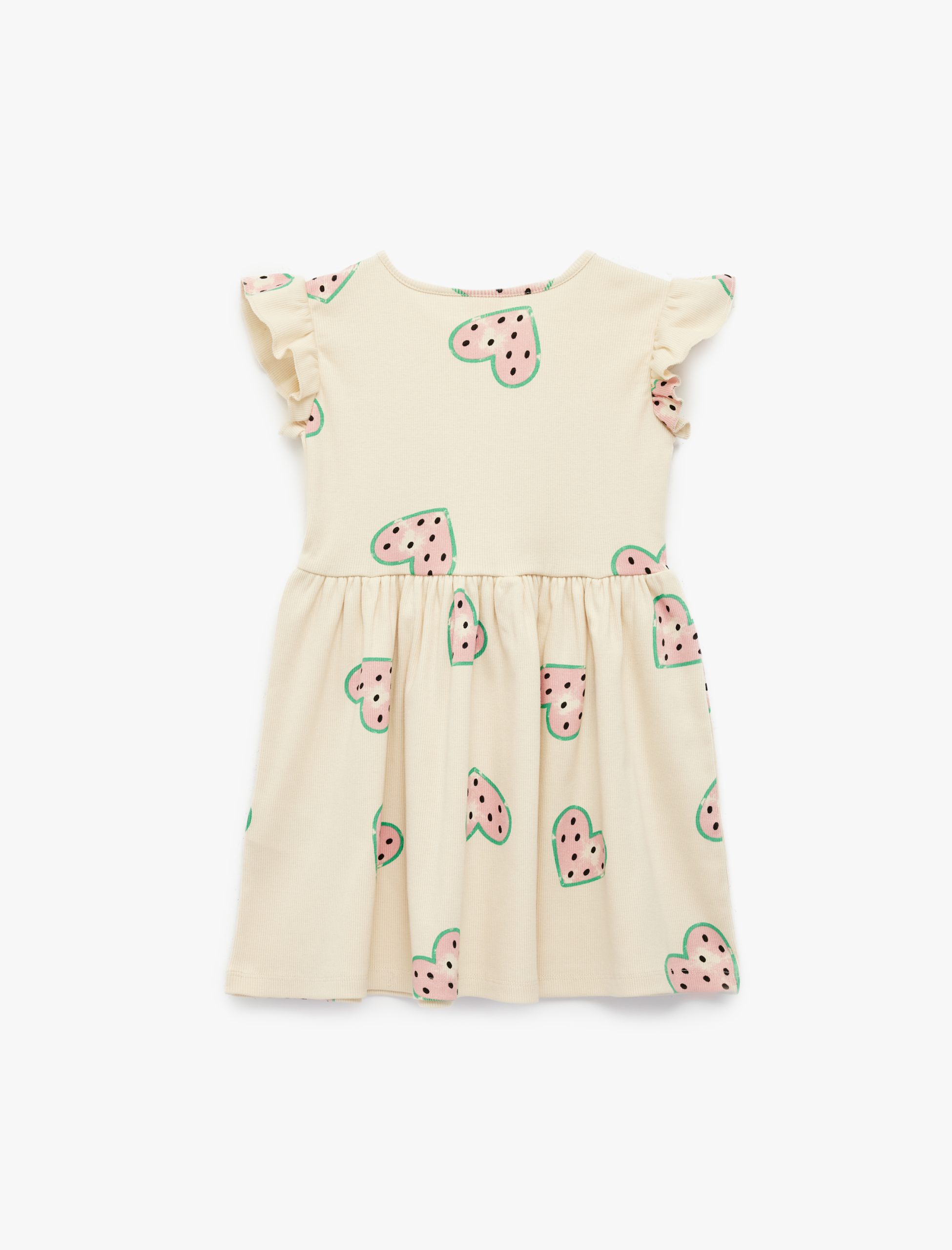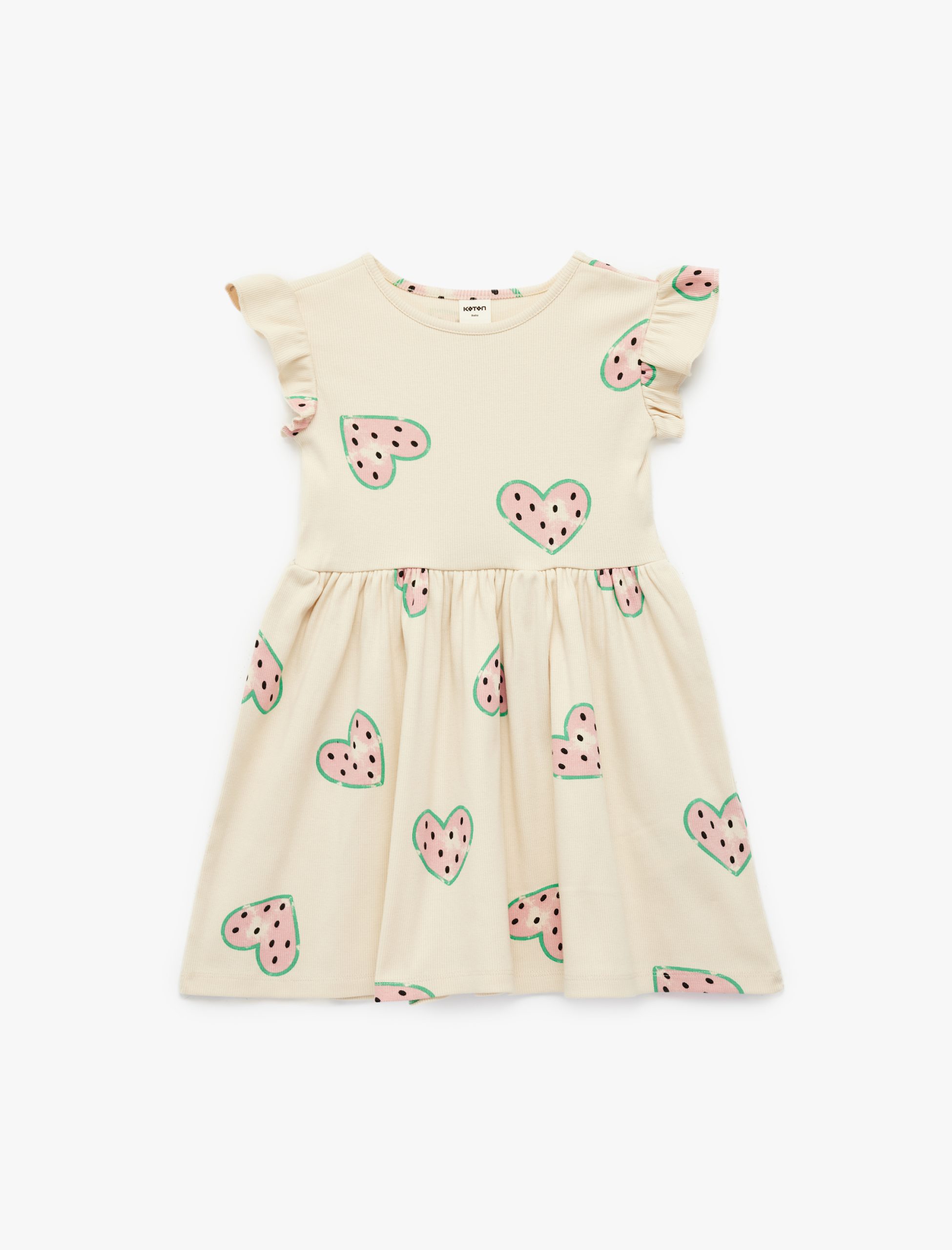 فساتين صغيرة للأطفال بنقش القلب بدون أكمام ورقبة مستديرة ومزينة بالكشكشة من القطن