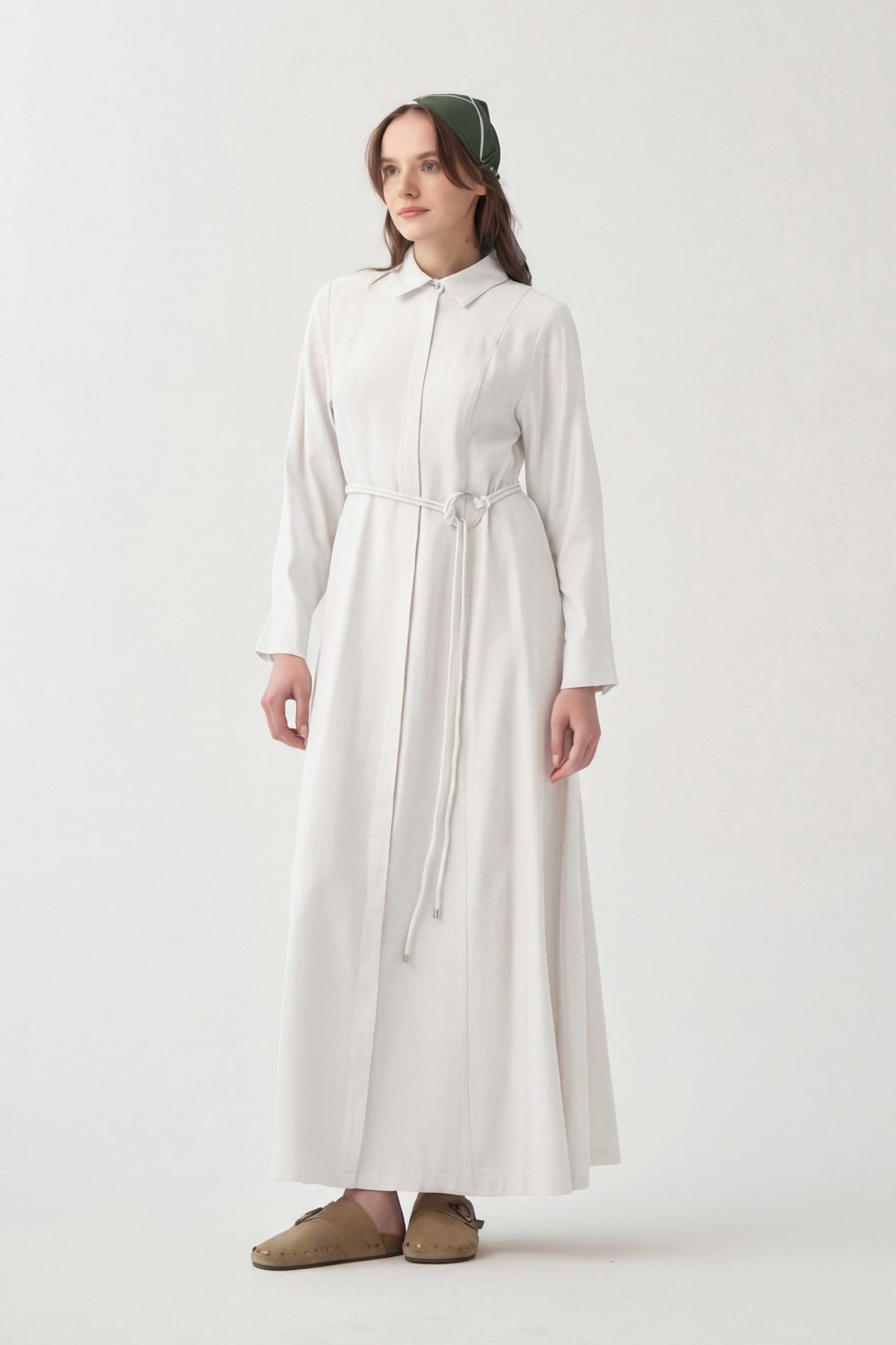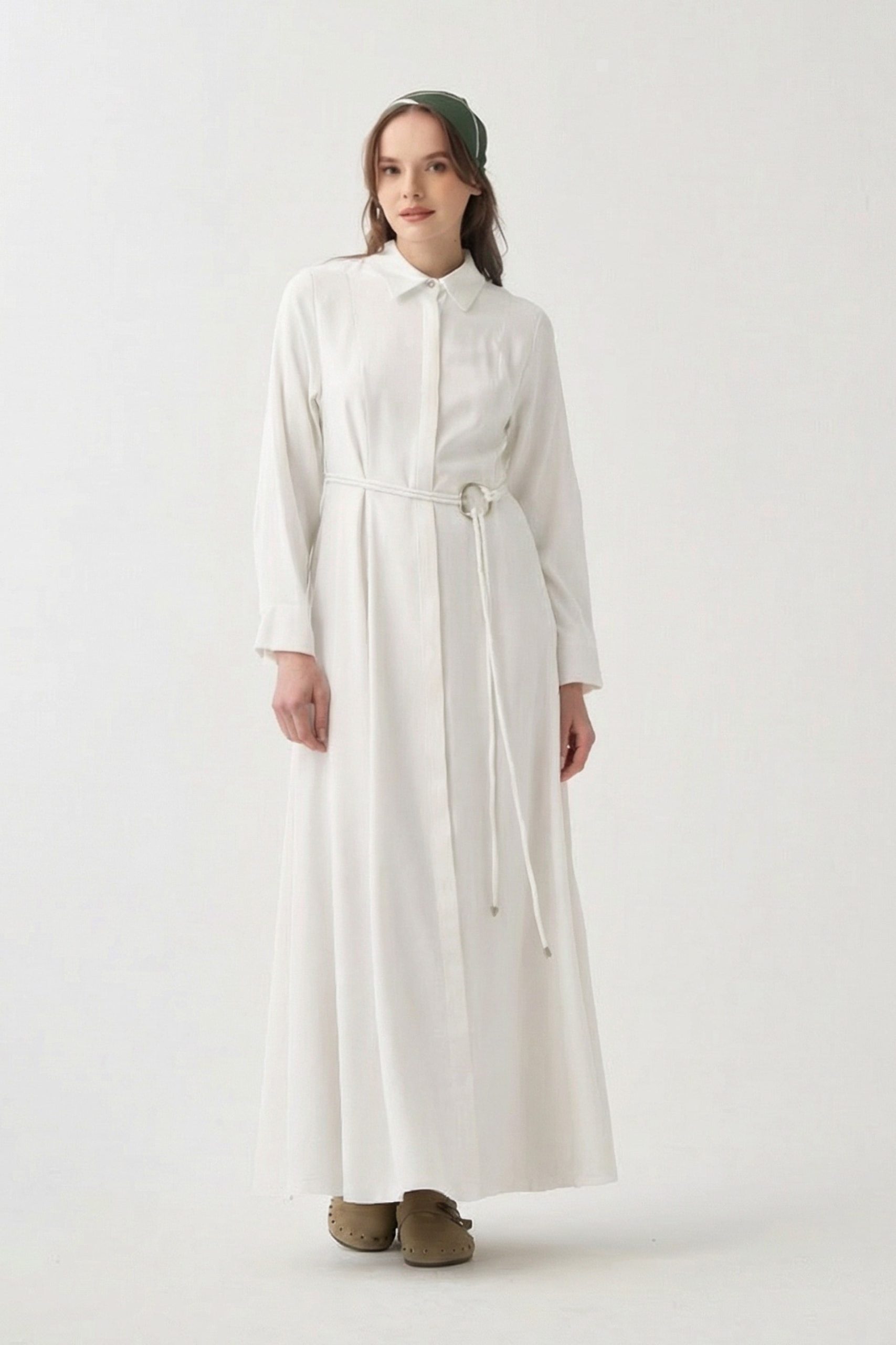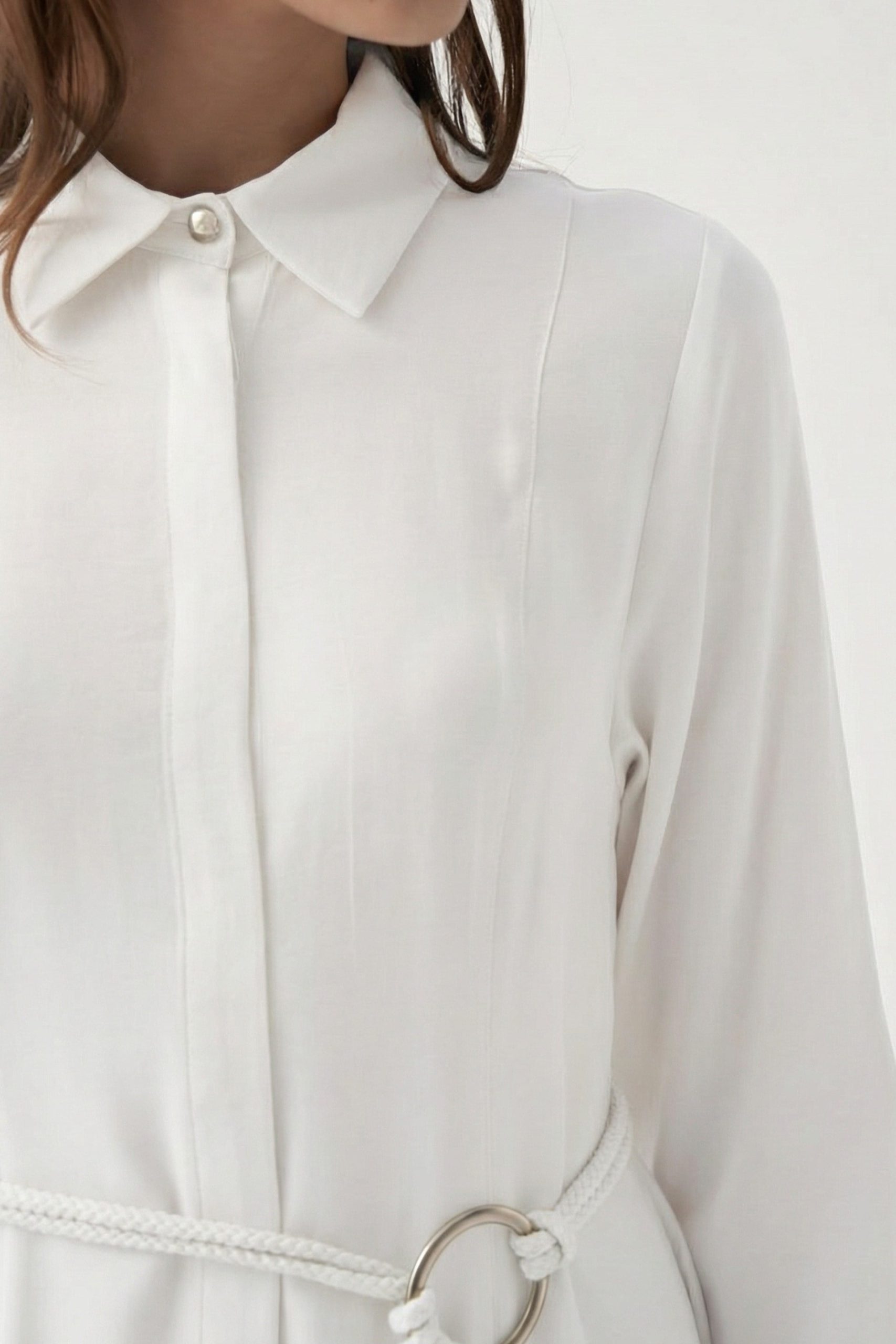 احصلي على مظهر أنيق مع فستان أبيض بتفاصيل حزام، مصمم خصيصاً للواتي يبحثن عن الأناقة في التفاصيل. مثالي للطقوس اليومية والمناسبات الخاصة.