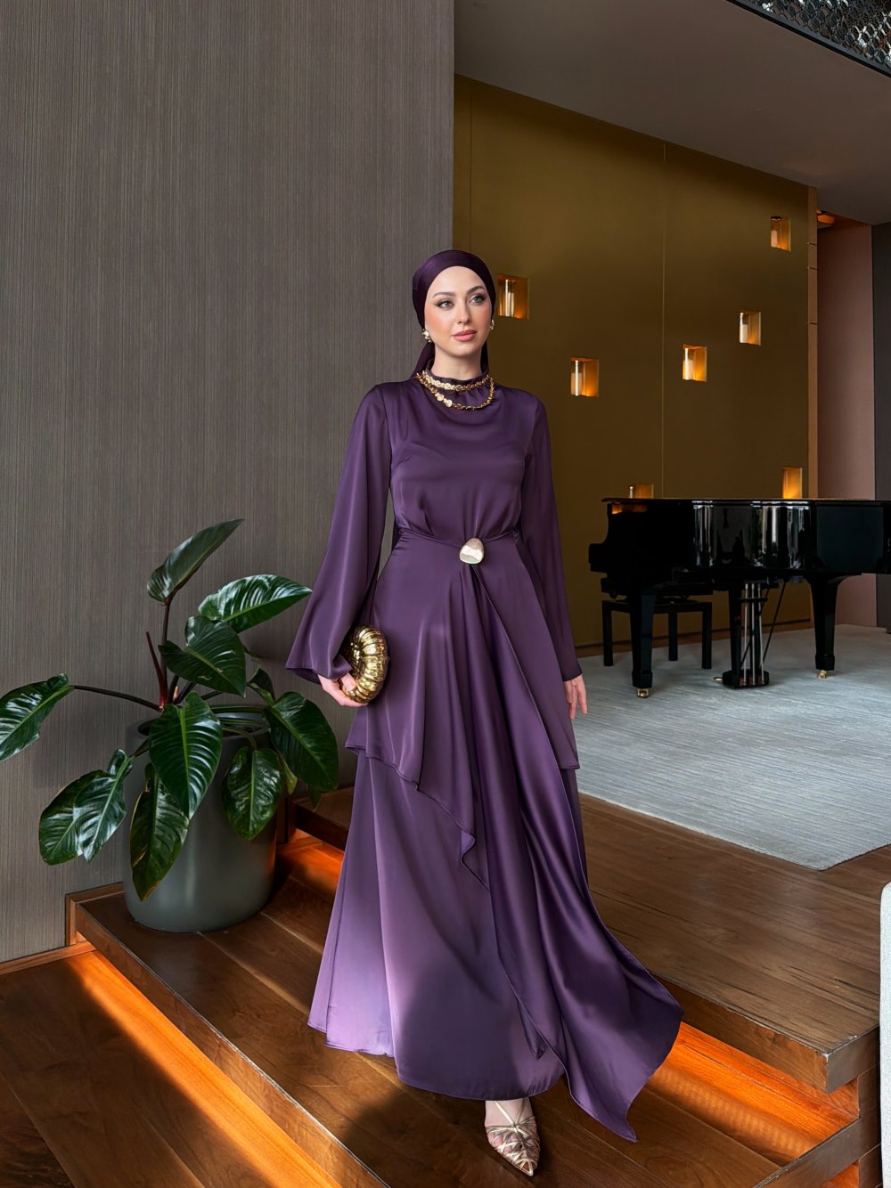 هذا الفستان مصنوع من قماش ساتان من الدرجة الأولى.