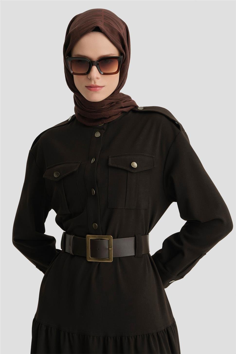 فستان أرمين مع حزام 25K9909 بني