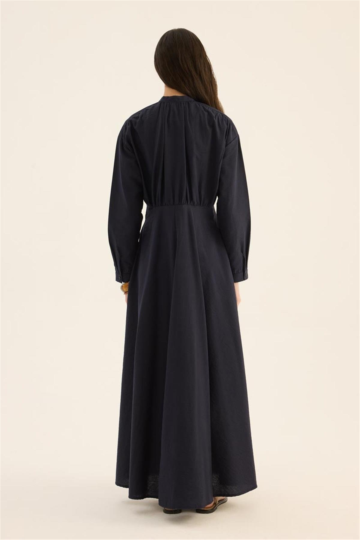 فستان أزرق بحري بقوام مجعد