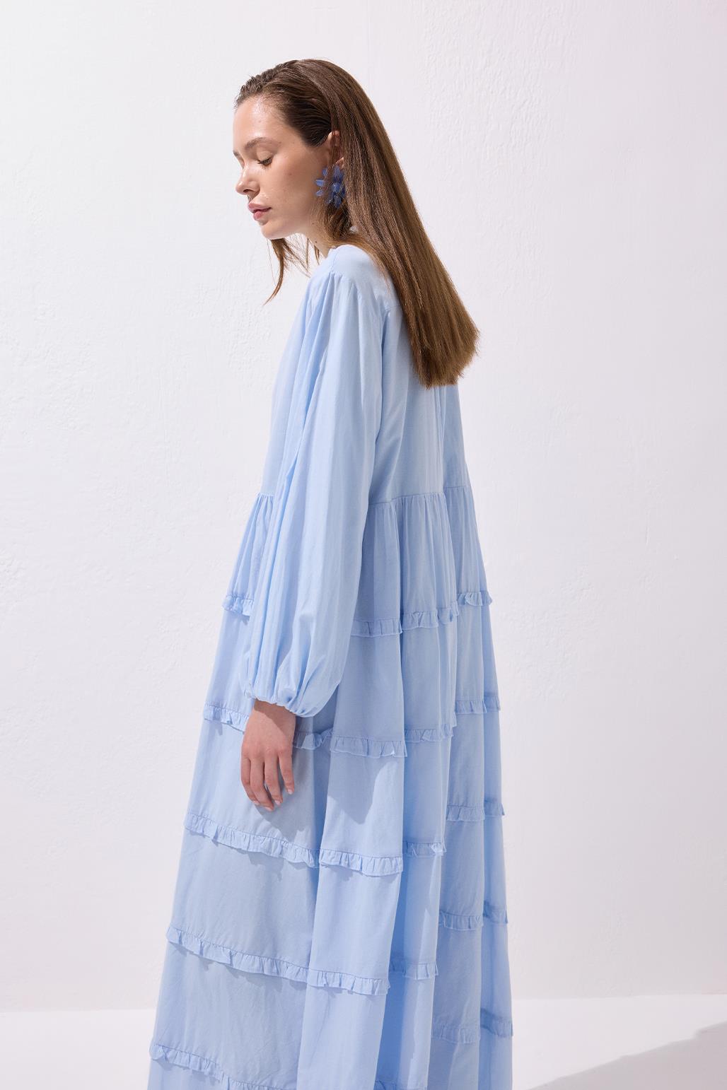 فستان أزور طويل مطوي باللون الأزرق الفاتح