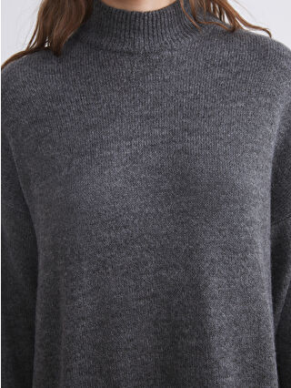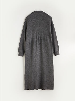 فستان أنثراسيت بقبة عالية من القماش المحبوك