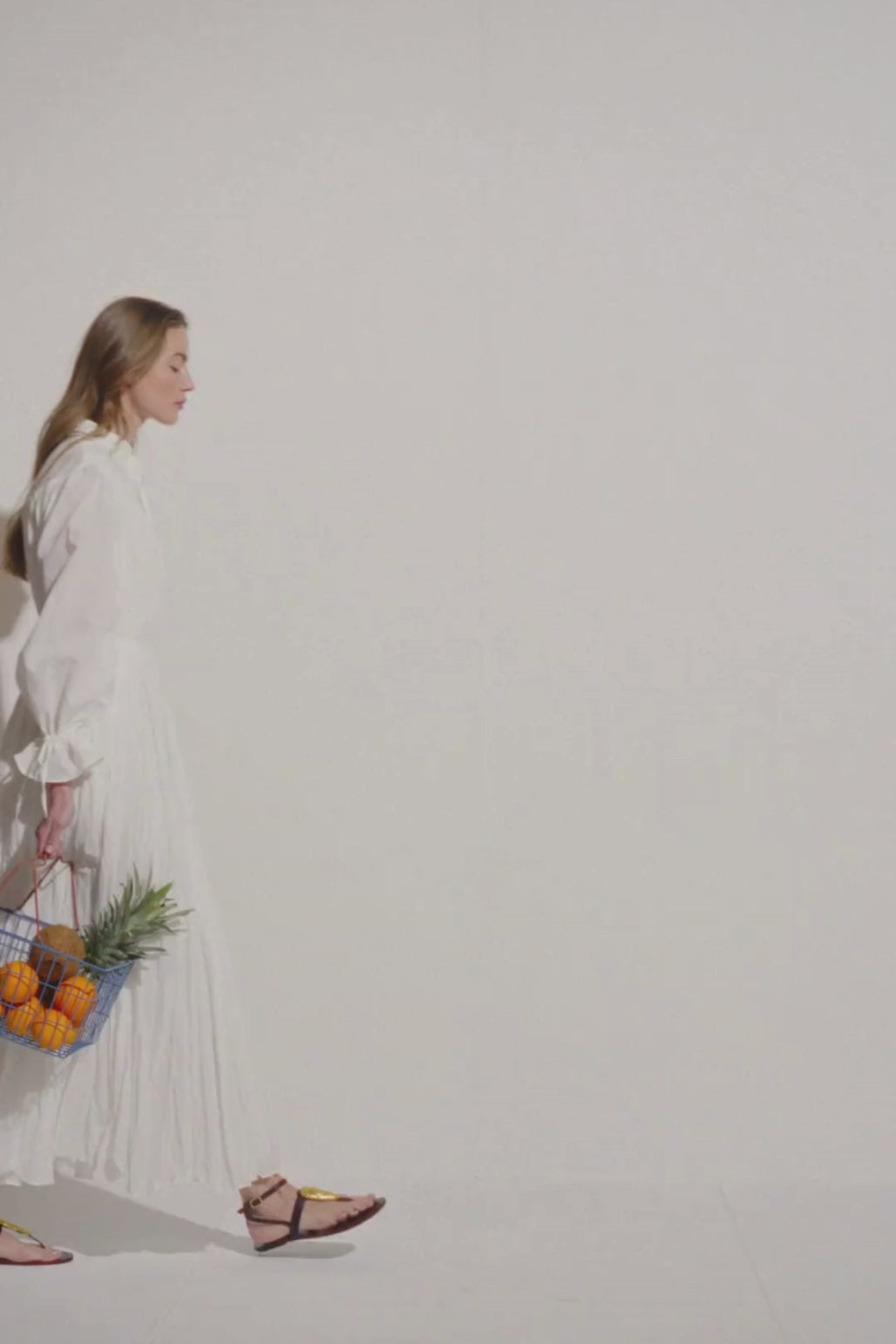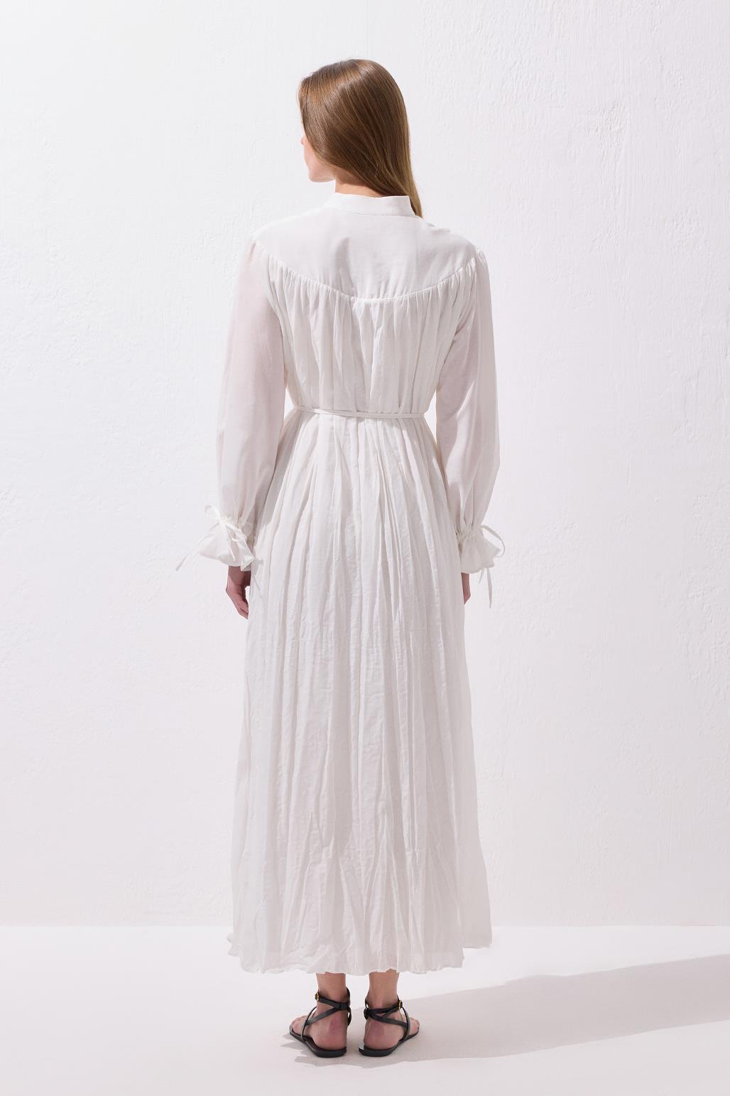 فستان أودري الطويل من قماش الفوال الكريب باللون البيج الفاتح