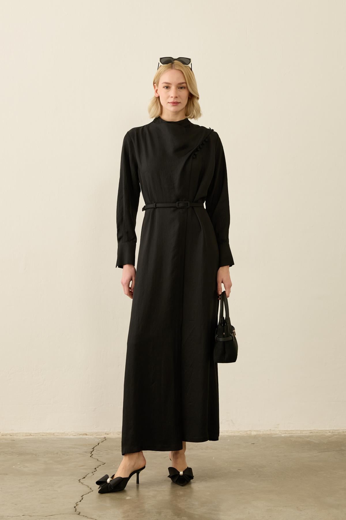مصمم بتفاصيل مكشكشة عند الخصر والصدر، يقدم هذا الفستان مظهرًا عصريًا وأنثويًا. قماشه المتدفق وقصته المريحة تضمن الراحة طوال اليوم، بينما تصميمه الأنيق يجعله مناسبًا لكل شيء من المناسبات الخاصة إلى الملابس اليومية.