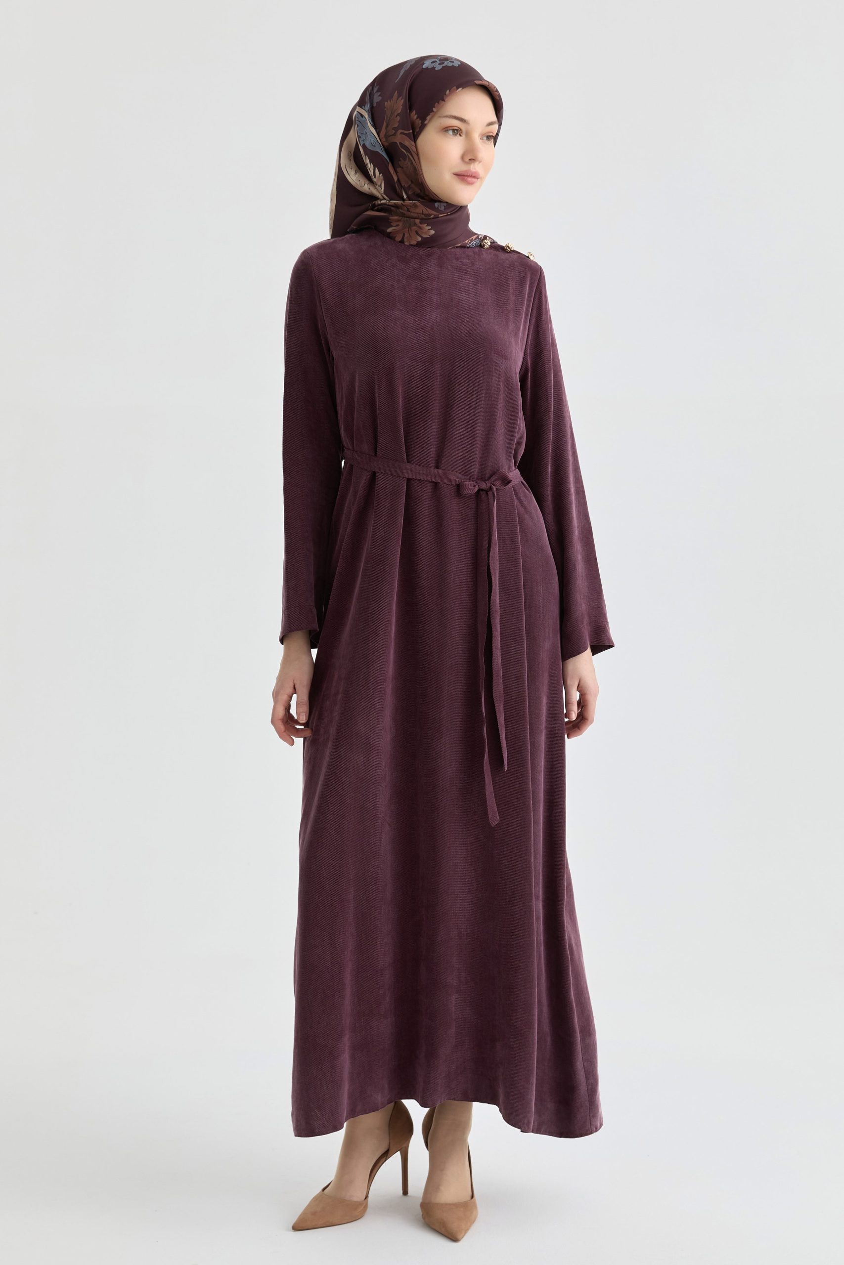 فستان أومزو ذو الأزرار – لون بورجوندي