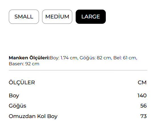 قياسات العارضة: الطول: 174 سم، الصدر: 82 سم، الخصر: 61 سم، الورك: 92 سم